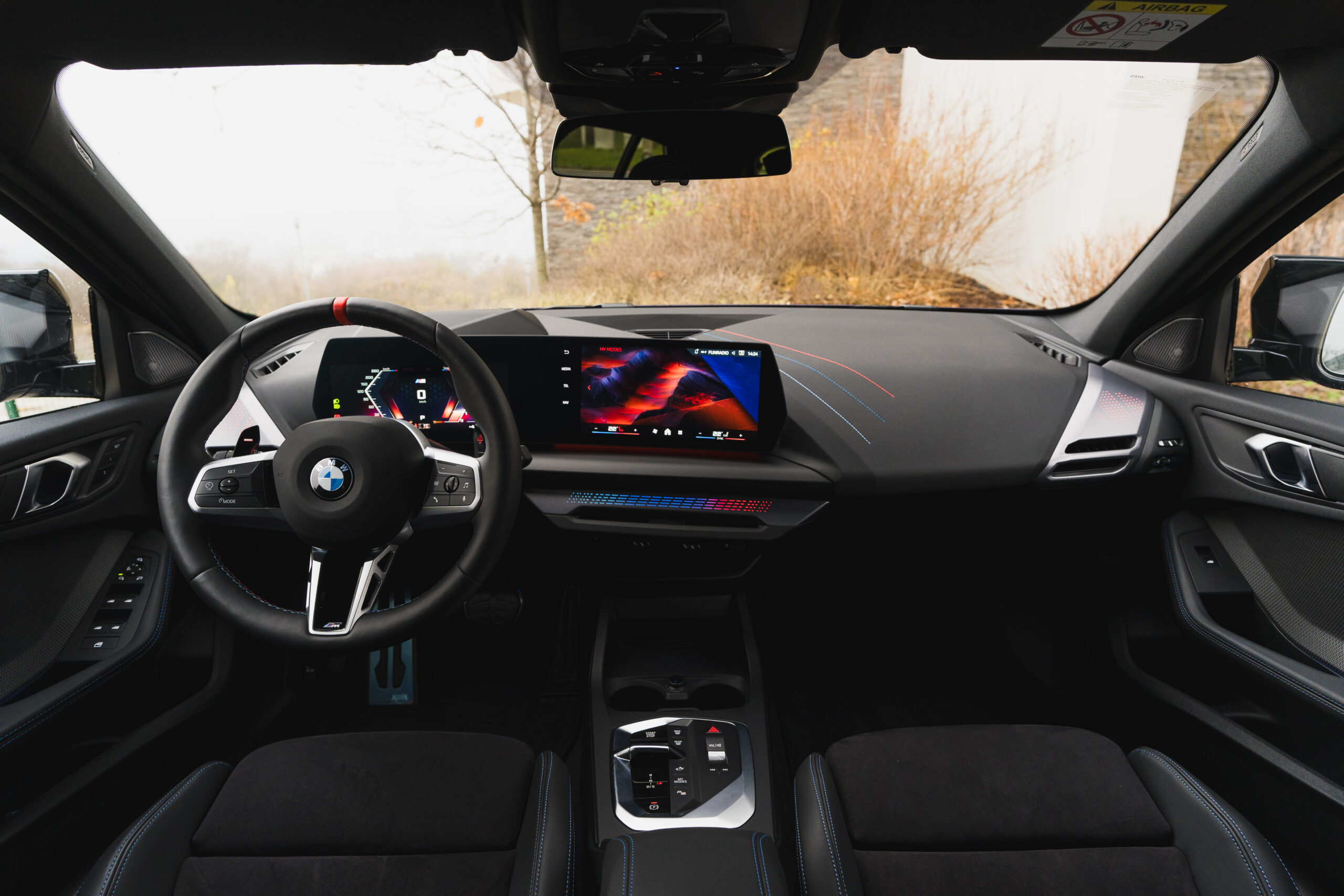 Do oka okamžite padne volant s krásnym M-prešívaním a priam dokonalé alcantarou potiahnuté škrupinové sedačky. Tie totiž ponúkajú skvelý pomer medzi komfortom a športovosťou. Sú nastaviteľné v každom ohľade, no zároveň ponúkajú skvelé bočné vedenie, ktoré je možné si podľa potreby aj prifúknuť a skvelo vodiča podrží pri ostrej jazde. Taktiež treba pochváliť skvelú ergonómiu, za volantom si nájde svoj ideálny posed naozaj každý. Veľmi nenápadným, no za to skutočne prínosným prvkom je pogumovanie zadnej strany pádiel na radenie. Prsty sa na nich vôbec nešmýkajú, čo sme ocenili pri športovej jazde.
