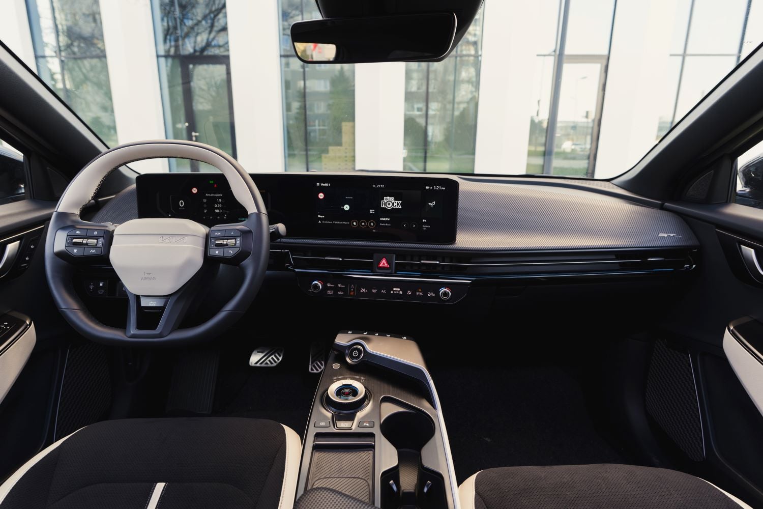 Interiér bol v porovnaní s exteriérom k zmenám šetrnejší, no ak ste niekedy sedeli v EV6, určite si všimnete nový volant. Rovnaký používajú aj modely EV9 a EV3 a do modelu EV6 prináša možnosť elektrického nastavovania s pamäťou. Na rozdiel od konkurencie používa Kia na volante matné plochy, čo sa z dlhodobého hľadiska javí ako lepšie riešenie. Dôležitejšou novinkou nového volantu je vybavenie kapacitným senzorom. Ten sme využili pri cestách po diaľnici, keď po aktivovaní adaptívneho tempomatu stačí volant jemne držať a vozidlo si samé drží jazdný pruh. V predchádzajúcom modeli bolo potrebné sa aktívne zapájať do riadenia, teraz teda stačí len držať volant.