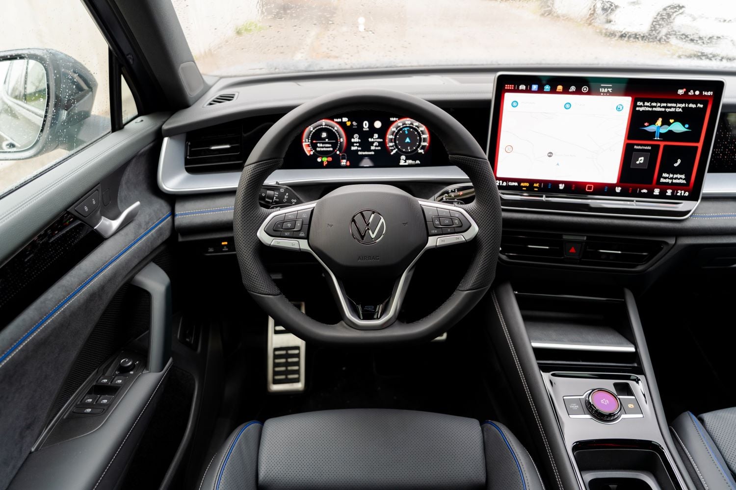 Vo vnútri vás očakáva milé prekvapenie v podobe mimoriadne dobrého spracovania a voľby materiálov. Vzhľad palubnej dosky je síce inšpirovaný Tiguanom, no nie je rovnaký. Pôsobí viac prepracovane a pri vhodne zvolenej konfigurácii až prémiovo. Dominantou je rozhodne stredový displej, ktorý pripomína notebook. Napriek jeho veľkosti neobmedzuje vo výhľade a vďaka orientácii na vodiča je praktickým doplnkom.