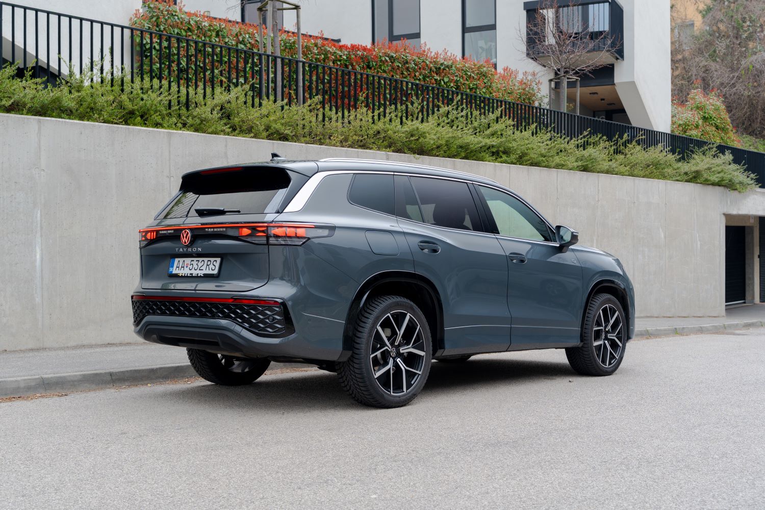 Treba uznať, že z hľadiska dizajnu sa vývojárom podarilo Tayron odlíšiť od menšieho Tiguanu. Okrem čelného pohľadu si tieto dva modely rozhodne nepomýlite. Kým Tiguan vsadil na útle oblé tvary, Volkswagen Tayron pôsobí viac maskulínne a odvážne. Pocit jazvečieho Tiguanu sa vytratil. Síce je novinka o niečo dlhšia ako Kodiaq, rázvor osí kolies je o pár milimetrov menší. Škoda tak svoje prvenstvo obhajovať nemusí.