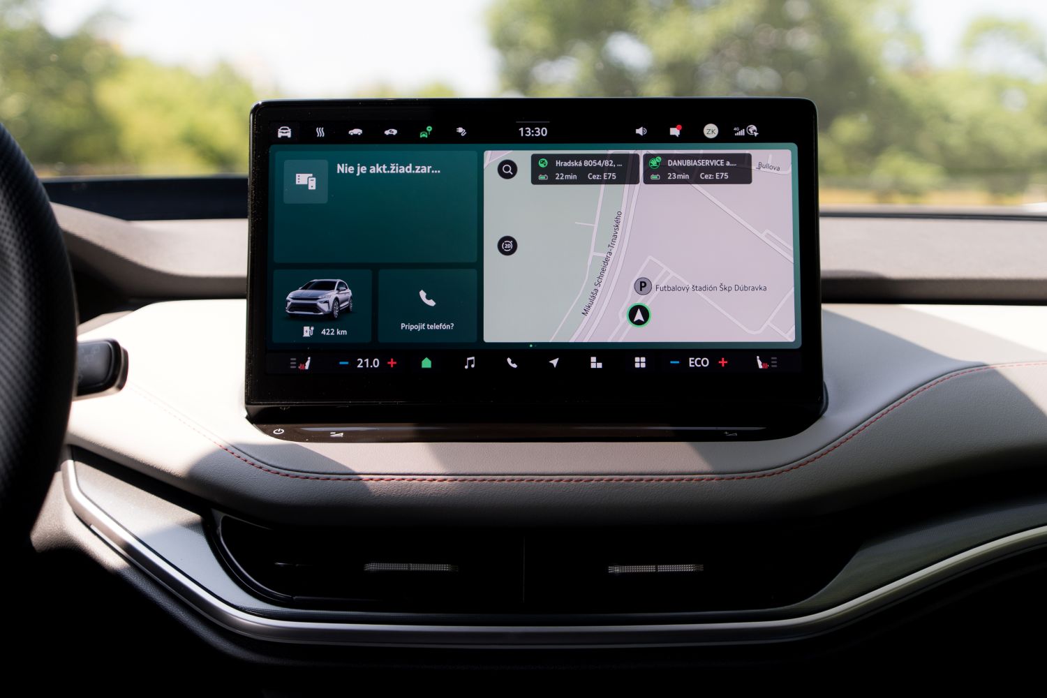 Dominantou palubnej dosky je veľký 13-palcový infotainment, ktorý pracuje rýchlo, bez zaváhaní a ponúka intuitívne rozhranie. Odozva na dotyk je okamžitá, plynulé animácie uľahčujú orientáciu v menu a nastaveniach. Pár klikov stačí na to, aby ste mali všetko podľa seba. Užívateľsky prívetivé prostredie ocenia nielen technicky zdatní mladí vodiči, ale aj tí, ktorí nemajú s modernou technikou veľké skúsenosti.