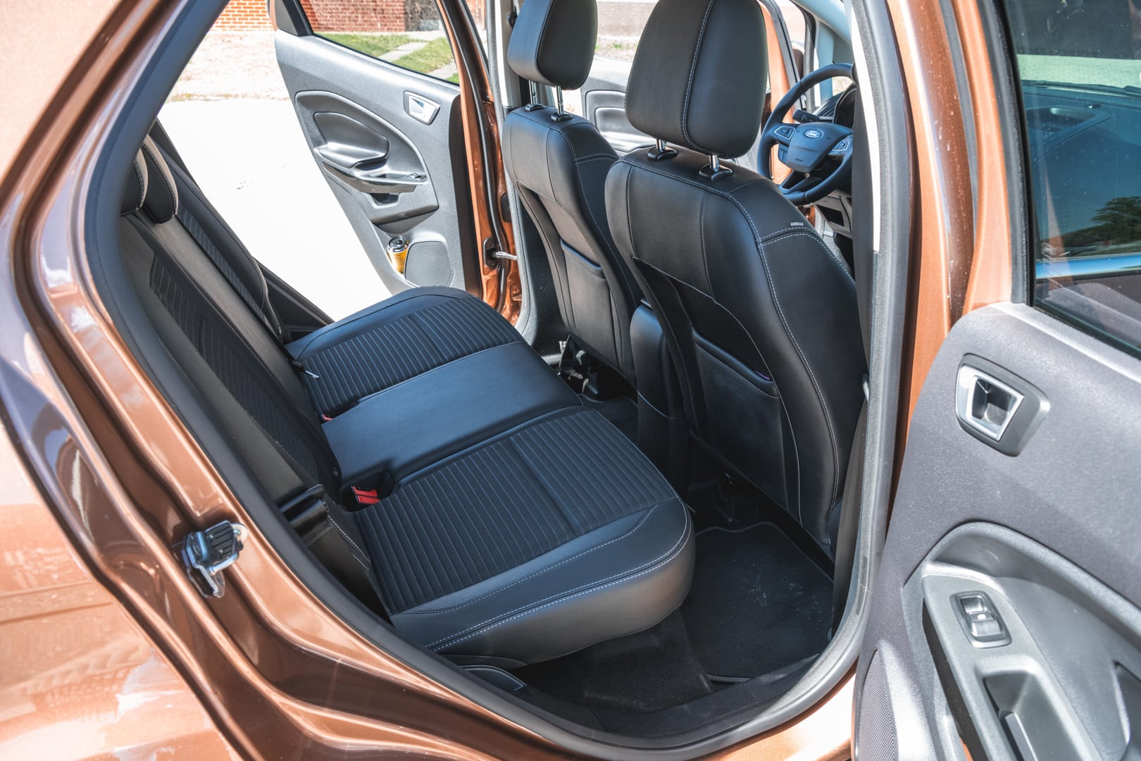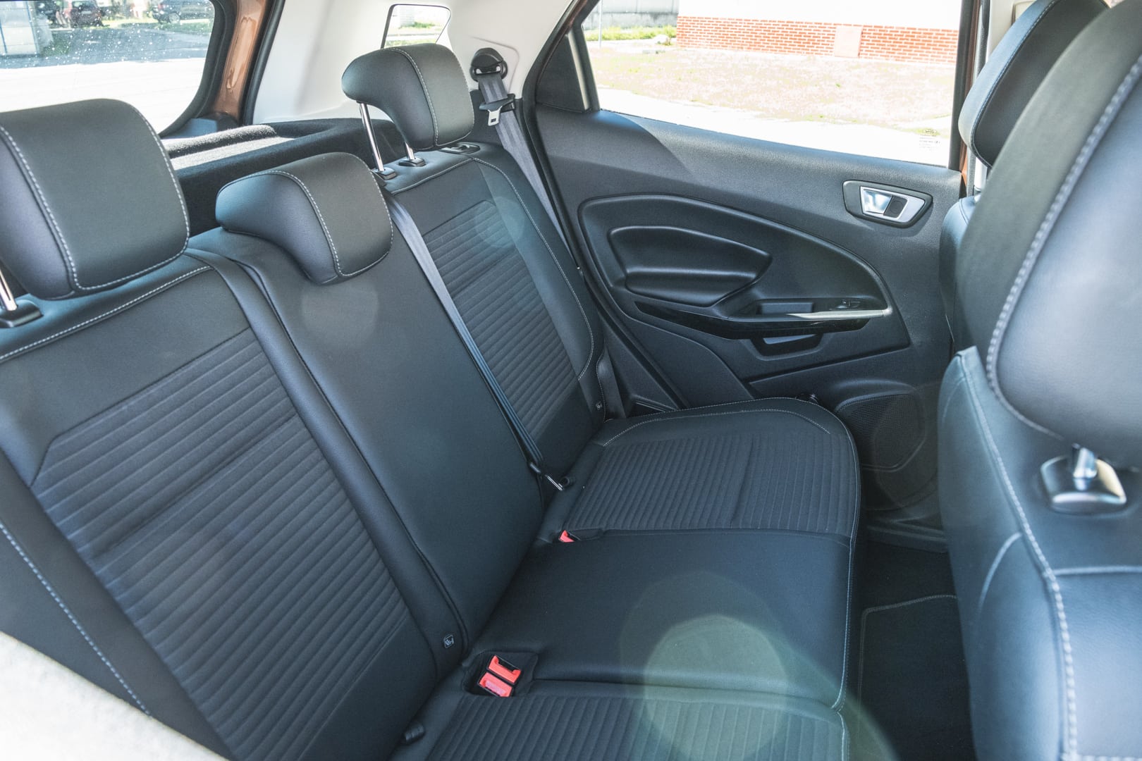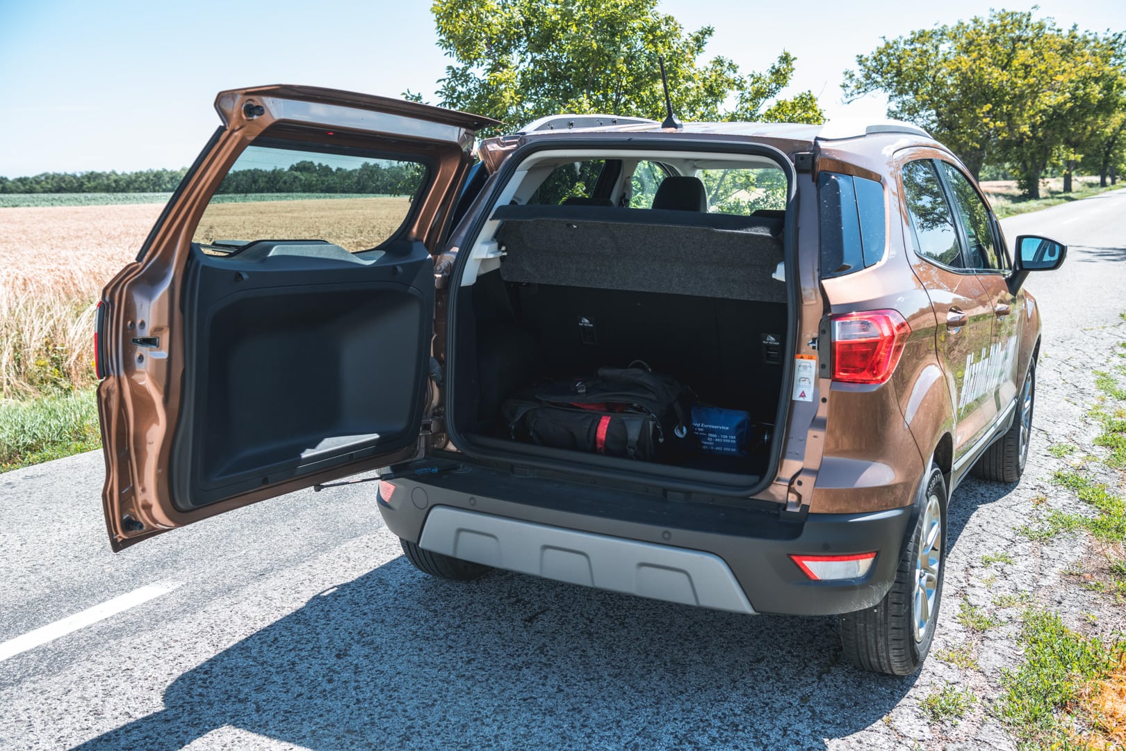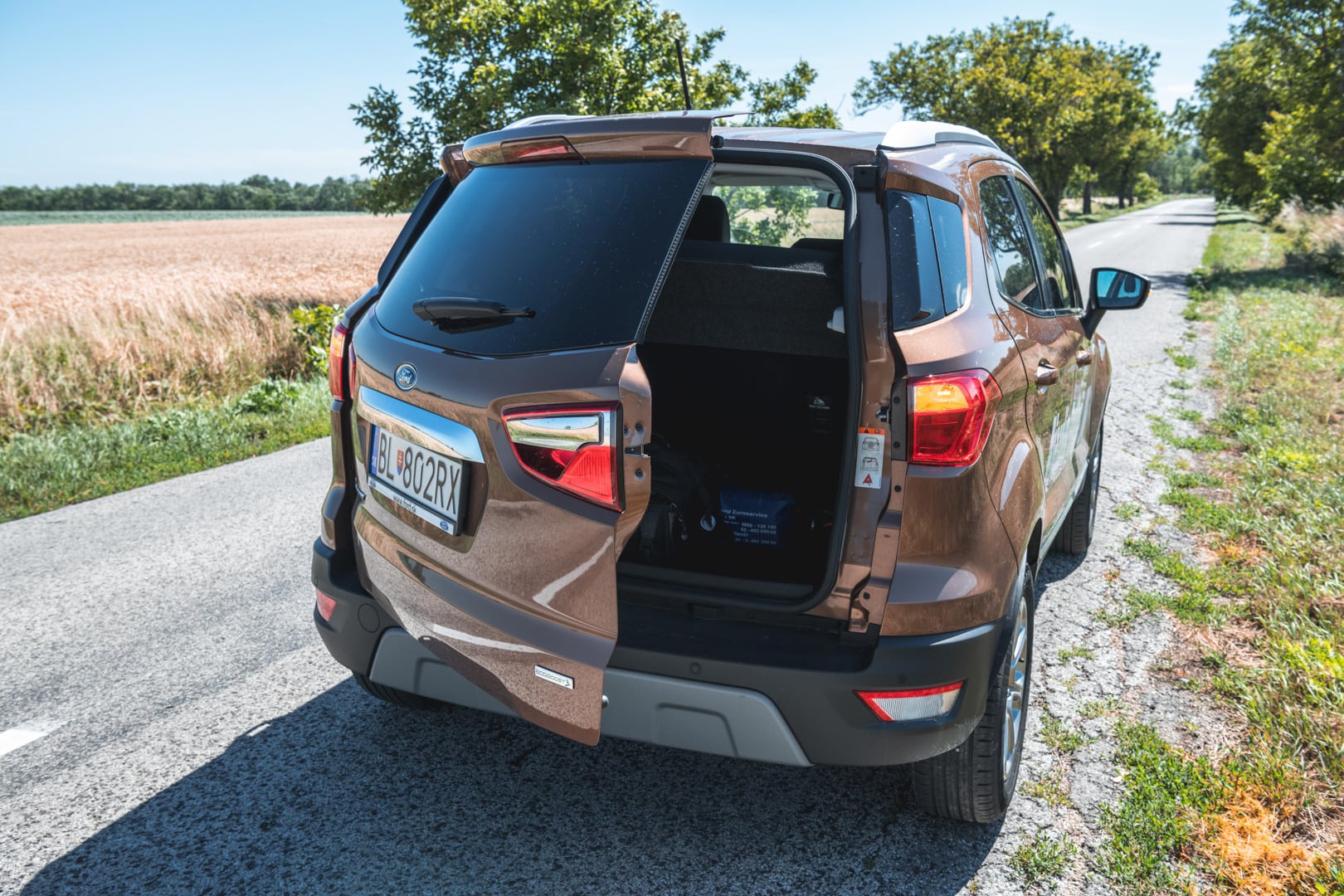 Objem batožinového priestoru je 334 l alebo 356 l, podľa toho, ako máte uložené dvojité dno. Nie je to síce veľa, no maximálny rozmer po sklopení sedadiel je až 1238 l. Zvláštnosťou je aj otváranie veka batožinového priestoru, keďže sa otvára do boku. Mne osobne to nepríde dvakrát praktické, ale je to vec názoru. Aj napriek menším vonkajším rozmerom som sa vo vnútri vôbec necítil stiesnene. Dokonca som mal pocit, že mám viac priestoru ako vo Fieste, no na rozdávanie ho nebolo. Rozhodne tomu dopomohol aj vysoký posed, za ktorý ide EcoSportu palec hore. Bez problémov som si sadol aj sám za seba, čo nie je s mojou výškou 188 cm vždy ideálne. Ak máte však v pláne voziť vzadu troch dospelých, nerobte to. Nezmestia sa!