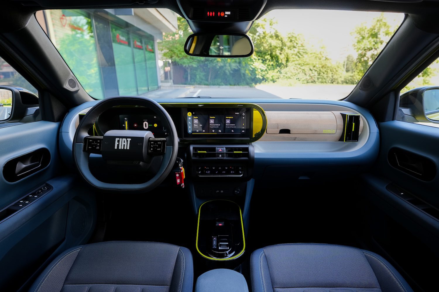 Prístrojový panel je potiahnutý poťahom vyrobeným z bambusového vlákna a vyzerá a pôsobí to na dotyk príjemne (len pri vyššej výbave La Prima). Každá Grande Panda obsahuje recyklovaný materiál zo 140 kartónových obalov na nápoje. Každý zo 140 kartónových obalov na nápoje pozostáva na 80 % z kartónu a na 20 % z nerecyklovaného plastu a hliníka, ktoré sa zvyčajne pri recyklácii odstraňujú. Predné sedadlá sú vzhľadom na rozmery pohodlné, zadné nás prekvapili veľkorysým priestorom pred kolenami.