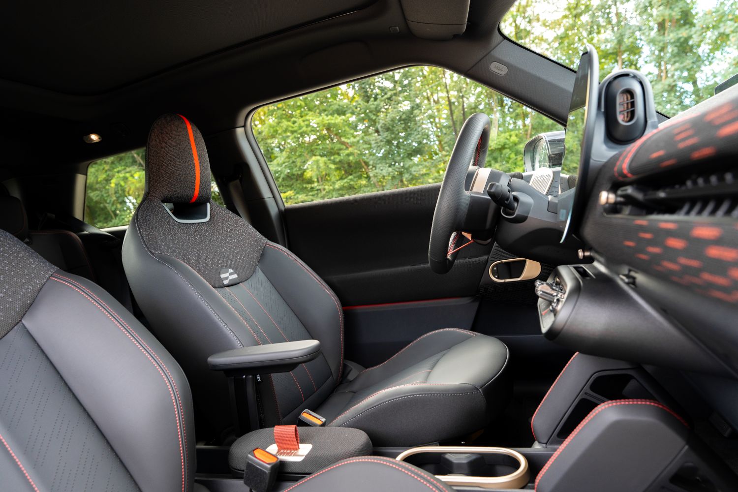 Kabína nového JCW Electric pôsobí moderne, no zároveň si zachováva typický štýl Mini. V strede palubnej dosky dominuje kruhový OLED displej, ktorý nahradil väčšinu fyzických tlačidiel. Z neho sa ovláda infotainment, multimédiá aj klimatizácia, takže všetko dôležité má vodič doslova na dosah. Dizajn je jednoduchý, ale premyslený. Nič tu nepôsobí zbytočne alebo preplnene.