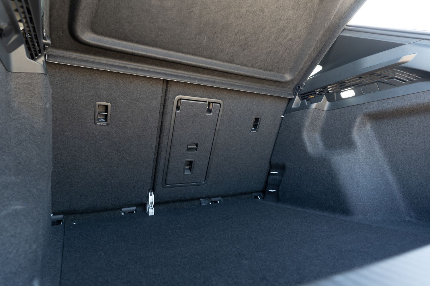 Veľa, batožinový priestor má základný objem až 543 litrov a má pravidelný tvar. Pod podlahou sa nachádza ešte schránka na uloženie povinnej výbavy a nabíjacieho káblu, keďže priestor pod prednou kapotou tu nie je vytvorený. Počítať treba s absenciou rezervného kolesa. Nachádza sa tu aj 12V elektrická zásuvka a dva jednoduché vešiaky. Zadné sedadlá sa nedajú sklápať z kufra, ale je tu prítomný stredový otvor na prepravu dlhých predmetov. Aj batožinový priestor je dobre osvetlený, svetelné body sa tu nachádzajú na oboch stenách.