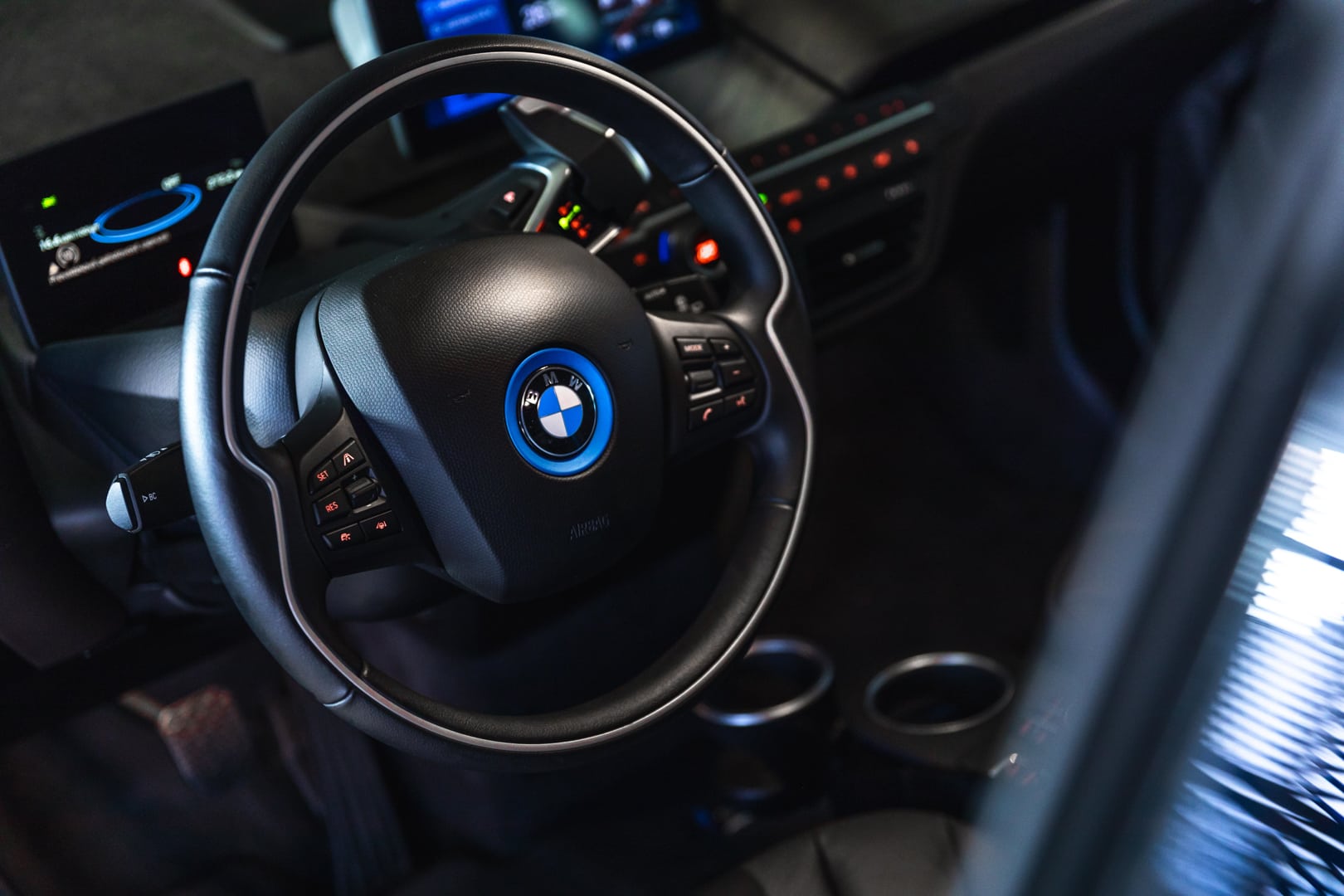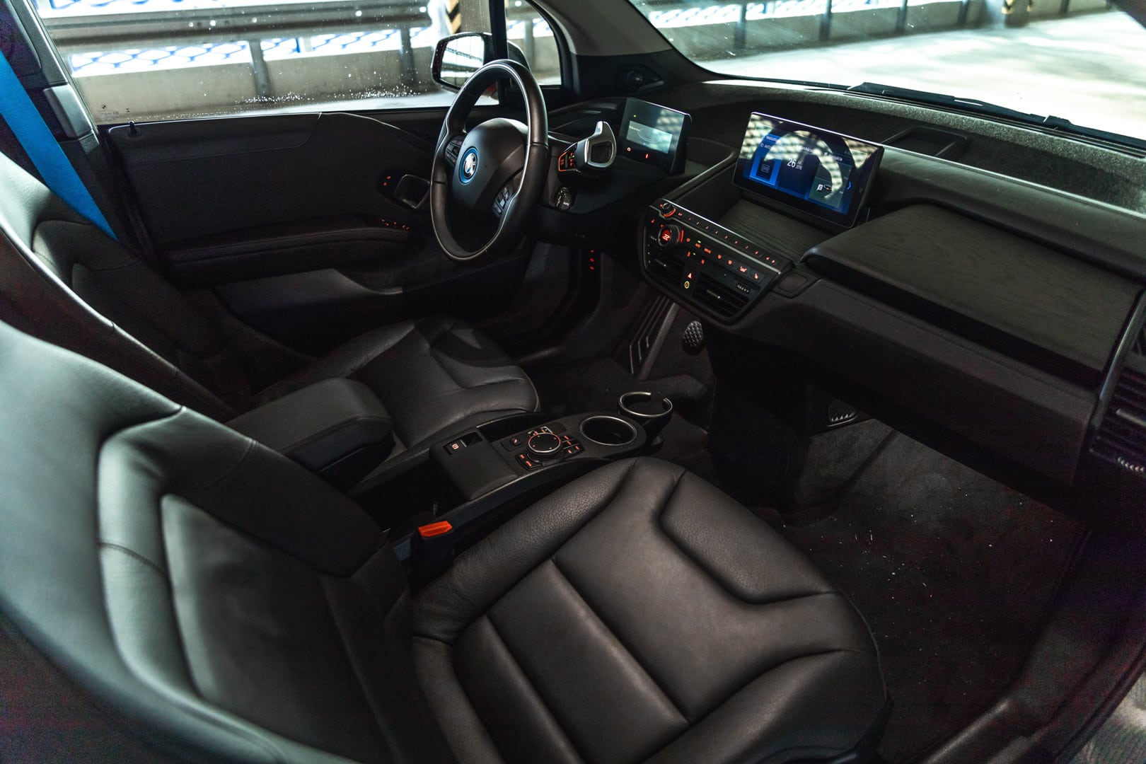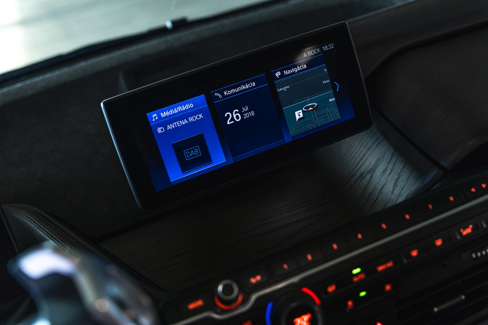Okej, i3S by asi súťaž krásy nevyhralo, ale čierno-červená kombinácia laku karosérie, čierne disky a ten zvláštny dizajn mu rozhodne dodávajú punc jedinečnosti! Prichádzate k autu a prvé, čo zbadáte, sú čierne úzke dvadsiatky. Otvoríte dlhé bezrámové dvere a šok v podobe interiéru pokračuje. Sedíte o kúsok vyššie, pretože pod vami sú batérie s kapacitou 30 kWh. Medzi vami a spolujazdcom je úplná rovina. Ženy ju pokojne môžu využiť na odloženie kabelky. Pretože ako som sa kedysi dávno dozvedel, kabelka patrí na zem a nie na sedačku, “lebo potom, keď zabrzdím, všetko sa vysype!” Každopádne, palubovka je akoby z inej dimenzie, dominujú jej dva displeje. Jeden menší za volantom a druhý väčší vznášajúci sa na konzole palubovky. Vypracovanie palubnej dosky vás očarí, rozhodne je jedinečné a v našom prípade v kombinácii dreva vyzerá skvelo! Rozhodne by som uvítal väčší displej za volantom, ono totiž tento pôsobí dostatočne veľko, no displejová plocha je o kus menšia. Celý interiér je minimalistický a nadčasový. Sedadlá pôsobia ako škrupinové, posed v nich fajn.