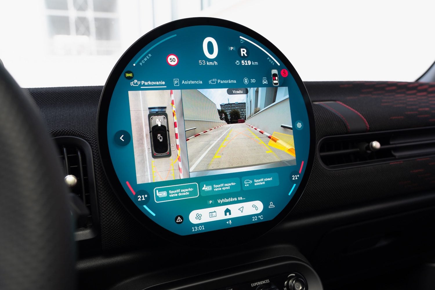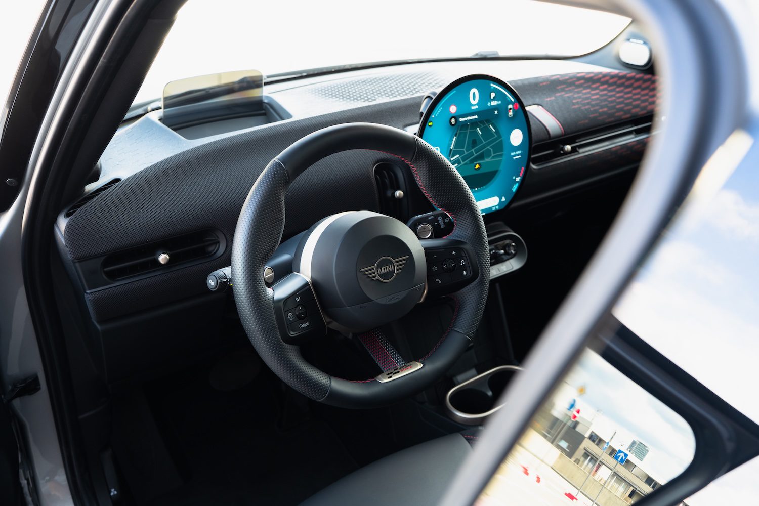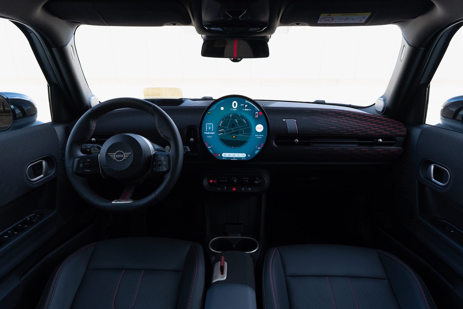 Minimalistický dizajn interiéru si vystačí s menším počtom komponentov, ktoré sú šikovne navrhnuté a vyrobené tak, aby užívateľovi poskytovali vysoký štandard. Za volantom je štíhly head-up displej, ktorý zaisťuje, že všetok relevantný obsah sa zobrazí v zornom poli vodiča. Výsledkom je, že palubná doska na strane vodiča nevyžaduje ďalší prístrojový panel, takže otvára vpredu voľný priestor. Tenký dotykový displej má kvalitný sklenený okraj, narástol do priemeru 240 mm a jeho používanie pripomína štandardy známe zo smartfónov. Teda až na jeho okrúhly tvar. Grafická prezentácia obsahu sa zameriava na to podstatné. Informácie týkajúce sa vozidla sa zobrazujú v hornej časti. Spodná časť OLED displeja poskytuje priamy prístup k navigácii, médiám, ponuky telefónu a klimatizácie.