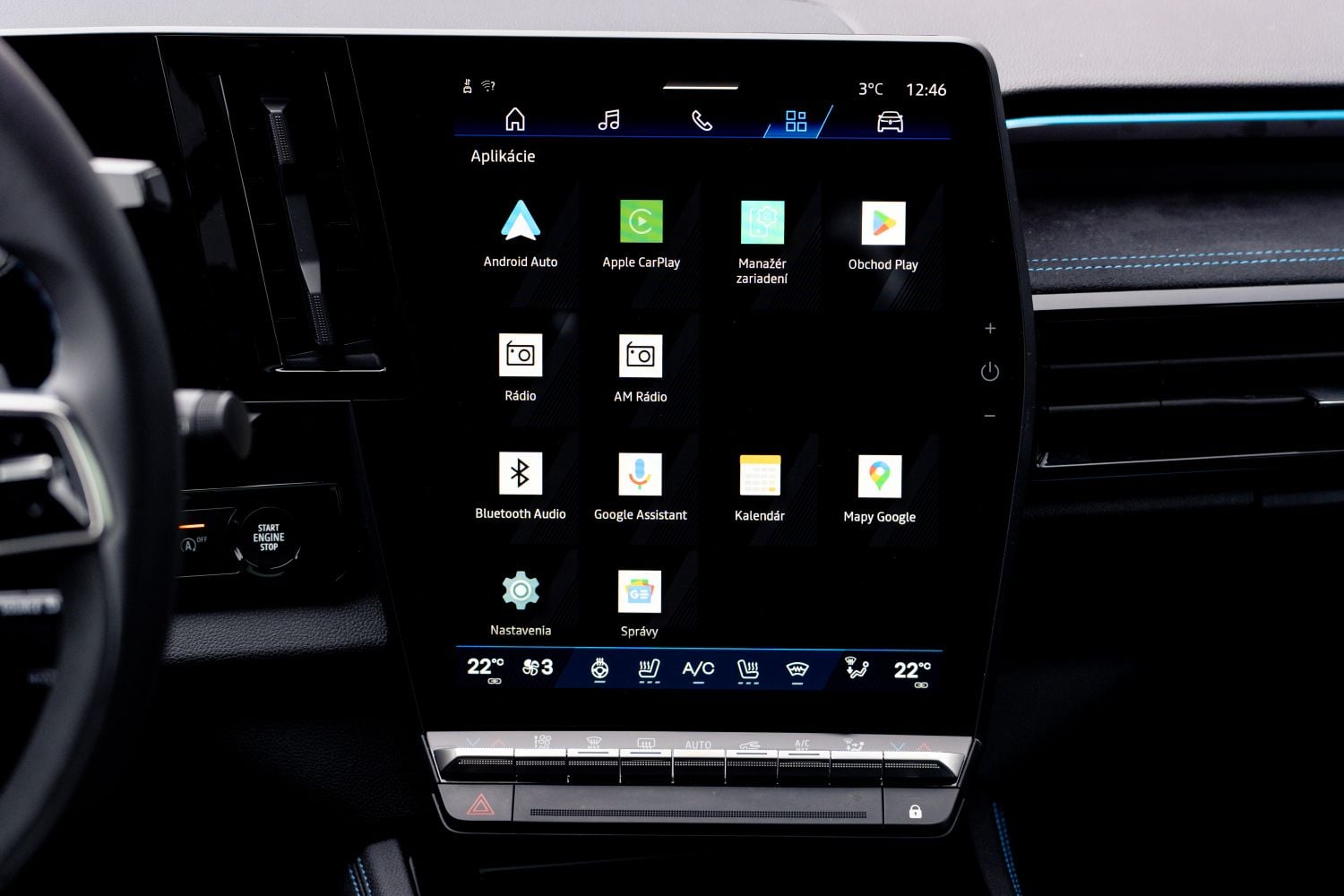 Dominantou interiéru je dvojica displejov systému OpenR. Ich grafika pôsobí moderne, reakcie sú rýchle a celé rozhranie funguje bez zbytočných zásekov. Oceňujem, že Renault konečne našiel rozumný kompromis medzi dotykovým ovládaním a fyzickými tlačidlami. Klimatizácia má vlastný panel, takže človek nemusí loviť základné funkcie v menu. Google služby fungujú spoľahlivo a navigácia reaguje rýchlo, čo pri každodennom používaní výrazne pomáha.