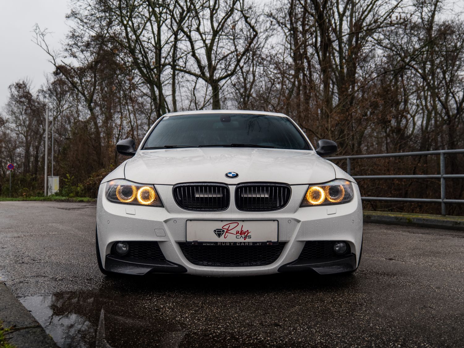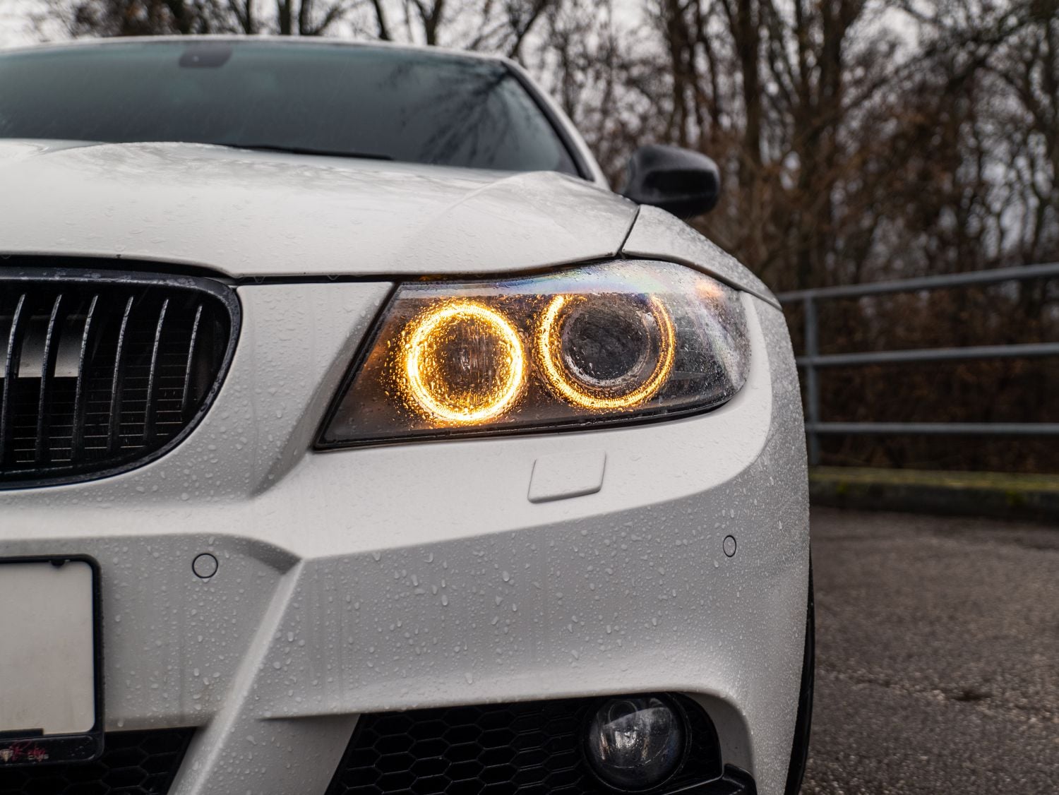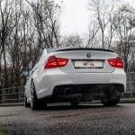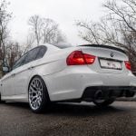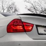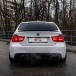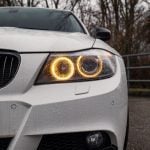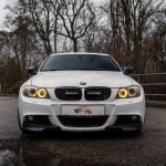 Facelift E90 priniesol zmeny, ktoré sú viditeľné na prvý pohľad a zároveň majú praktický význam pri každodennom používaní. Predná časť dostala prepracovaný nárazník s výraznejšími horizontálnymi líniami a väčšími otvormi pre prívod vzduchu, čo opticky rozšírilo postoj vozidla a zlepšilo prúdenie vzduchu okolo karosérie. Svetlomety si ponechali charakteristické kruhové angel eyes, no ich grafika a osvetlenie prešlo modernizáciou. LED prstence vytvárajú čistejší svetelný podpis a lepšie definujú tvar prednej masky. Kapota a línia blatníkov zachovávajú klasické proporcie BMW s dlhšou kapotou a kabínou posunutou dozadu, čo pri pohľade z boku stále pôsobí športovo a vyvážene.