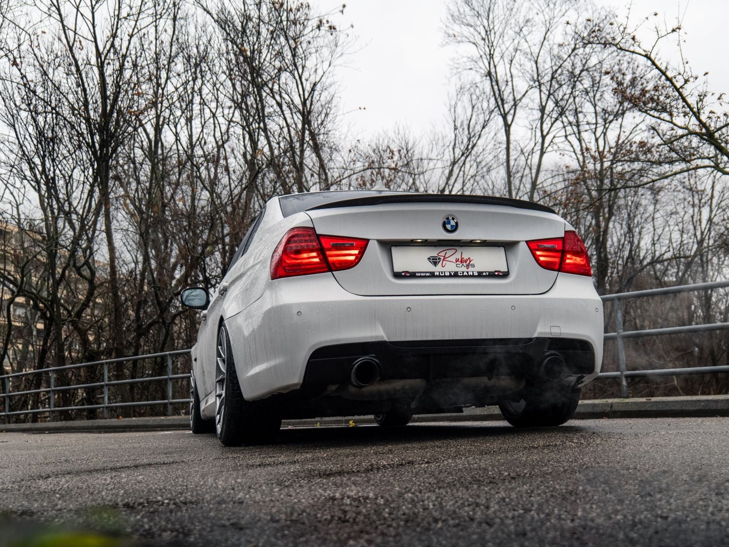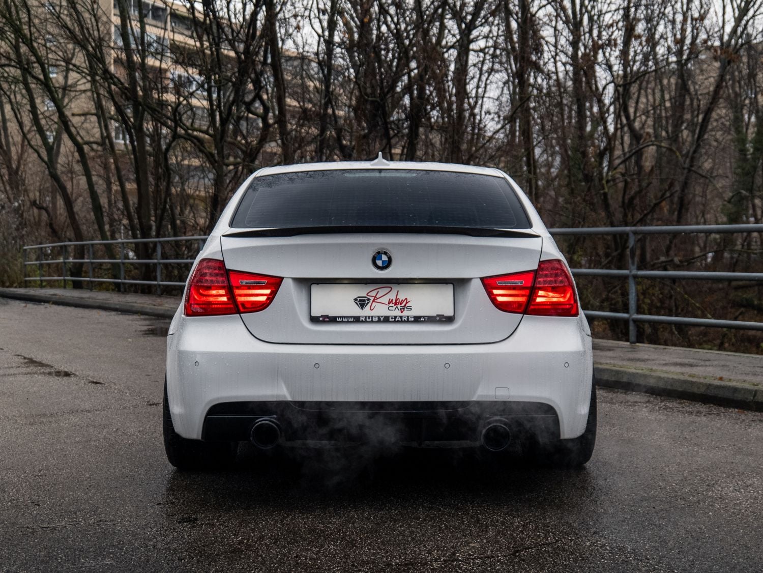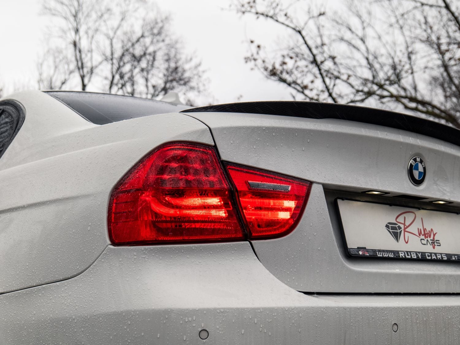Zadná časť prešla najvýraznejšou vizuálnou aktualizáciou. Svetlá s LED grafikou vytvárajú širší a modernejší svetelný podpis, ktorý lepšie nadväzuje na tvar kufra a bokov. Nárazník získal prepracované členenie a po stranách integrované koncovky výfuku. Subtílny zadný spojler na veku kufra zlepšuje vizuálnu kontinuitu línie strechy a zároveň prispieva k stabilite pri vyšších rýchlostiach. Biela karoséria v odtieni Alpine White III zvýrazní čisté plochy a presné prelomy karosérie.