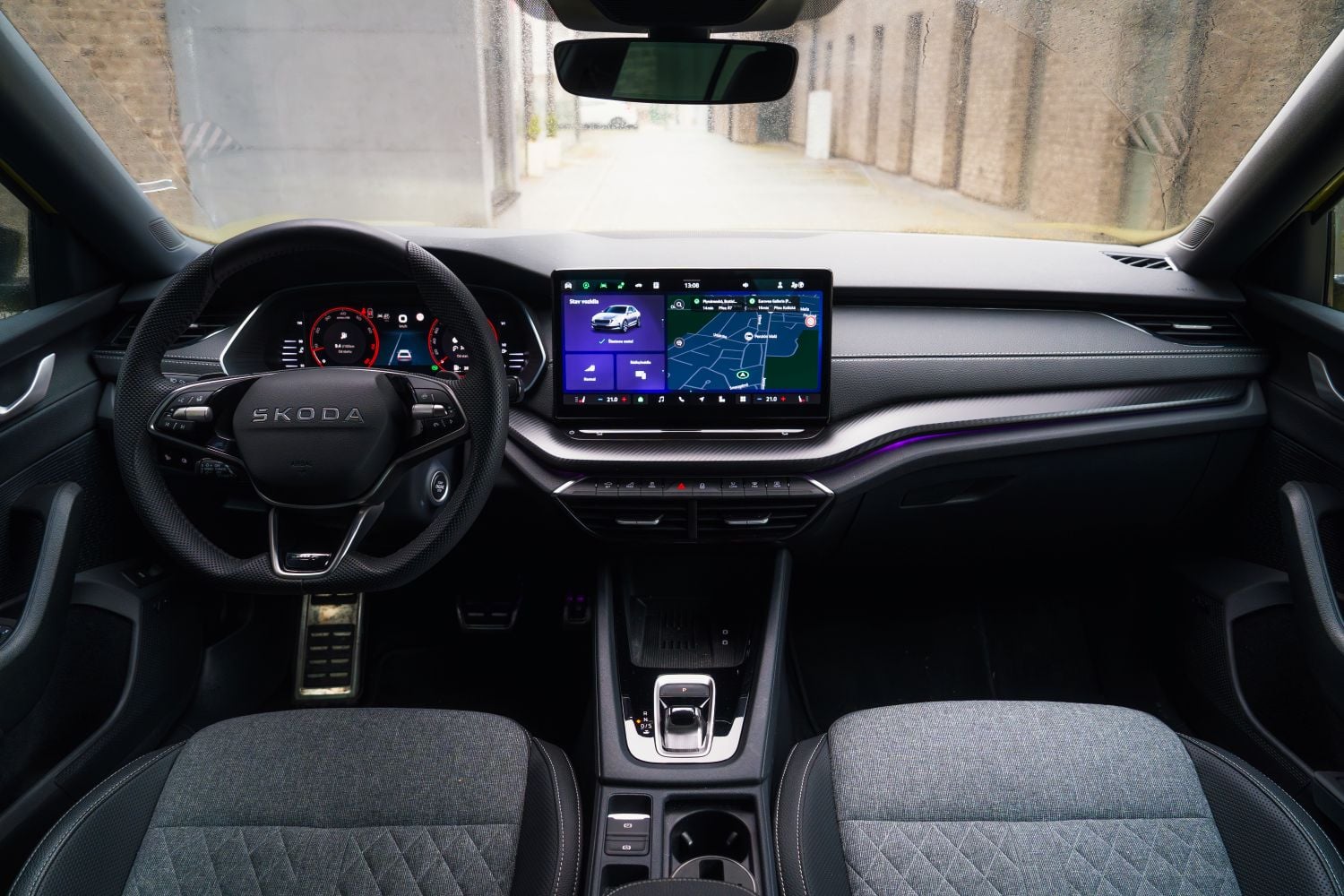 Interiér faceliftovanej Škody Octavia ide presne v duchu aktuálnej digitálnej filozofie koncernu Volkswagen Group. Hlavnú rolu hrá 13-palcový centrálny displej, ktorý dnes tvorí základ takmer každej vyššej špecifikácie. Reakcie systému sú rýchle, grafika čistá a navigácia pracuje prehľadne. Oceňujem, že výrobca zapracoval na logike menu, k asistenčným systémom sa dostanete rýchlo a ich vypnutie neznamená zdĺhavé preklikávanie.