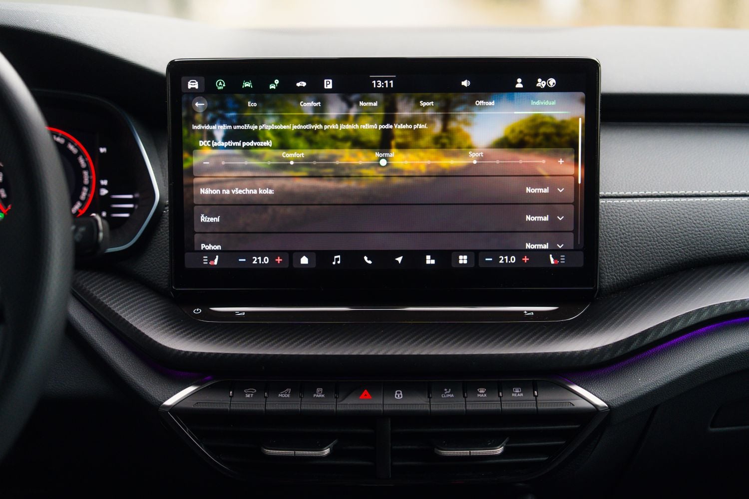Nová Škoda Octavia stojí na platforme MQB Evo, no charakter auta najviac formuje adaptívny podvozok DCC. V tejto konfigurácii mení Octaviu z tradičného rodinného liftbacku na prekvapivo univerzálny stroj. V režime Eco dokáže auto pri ustálenom tempe po ubratí plynu plachtiť s odpojeným motorom a robí to tak prirodzene, že si to človek všimne až podľa klesajúcich otáčok. Pri klesaní horskými úsekmi tak šetrí palivo. Auto príjemne filtruje nerovnosti a aj na 19-palcových diskoch nepôsobí tvrdo. Karoséria si drží kontrolu, no zároveň neodovzdáva do kabíny zbytočné rázy.