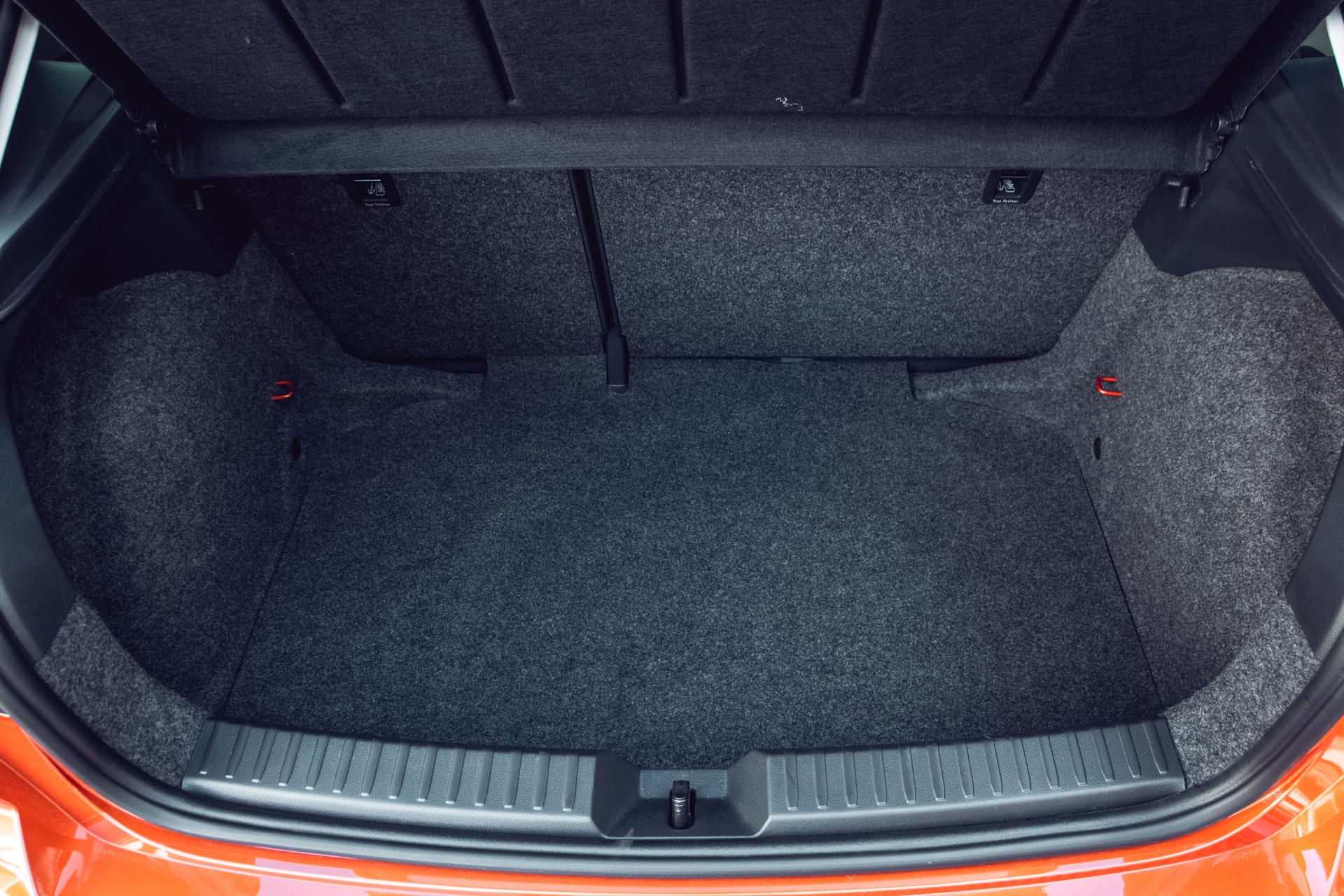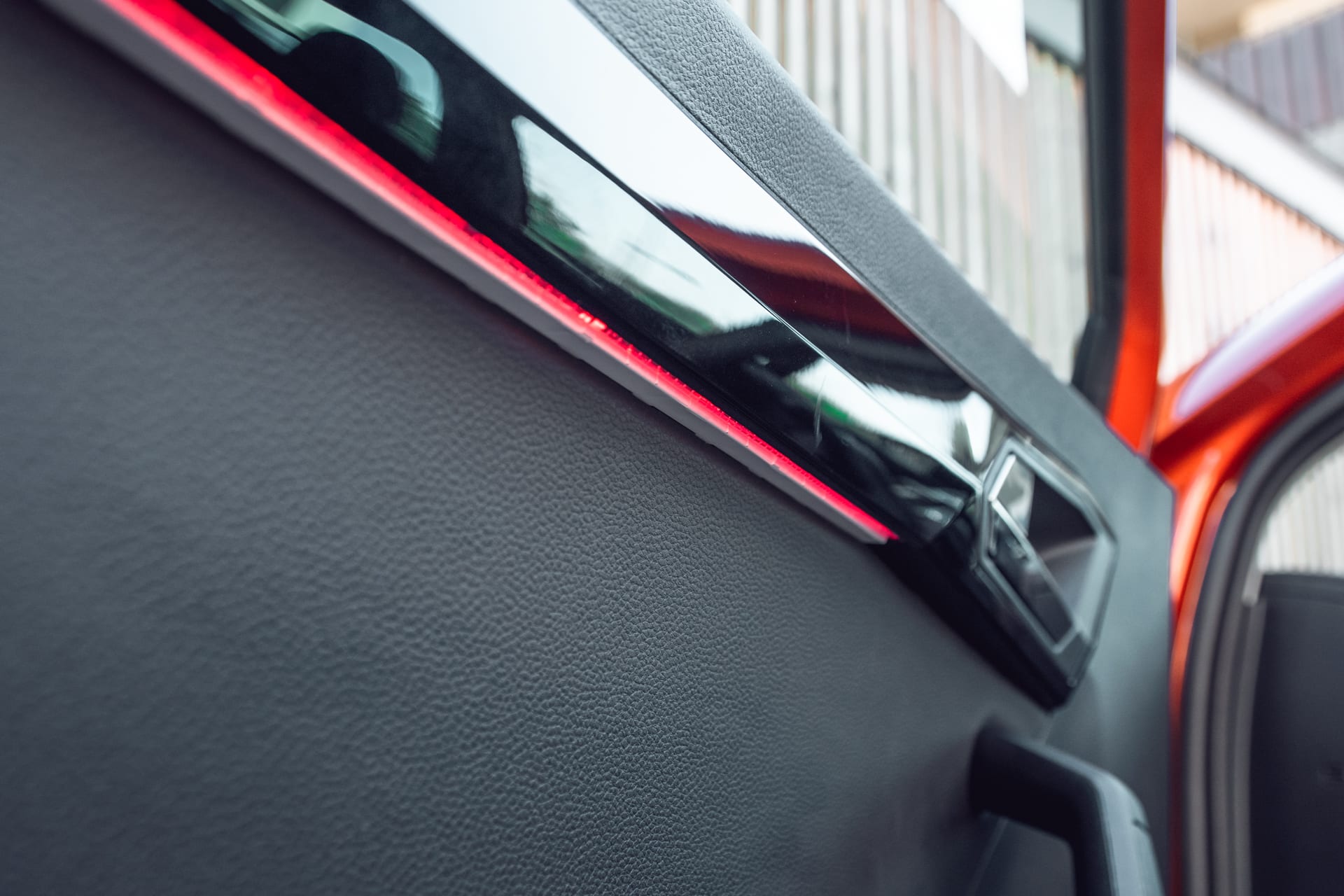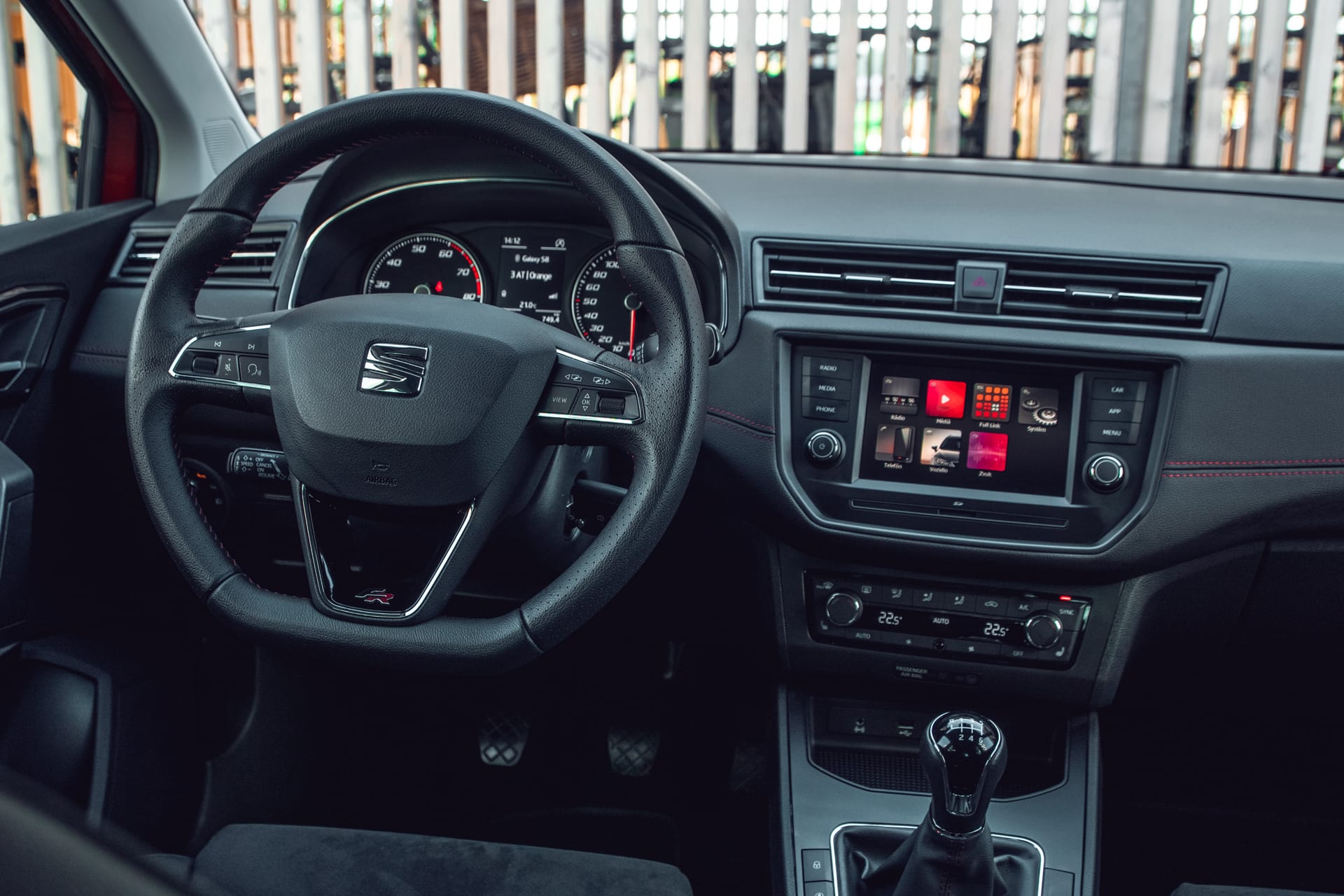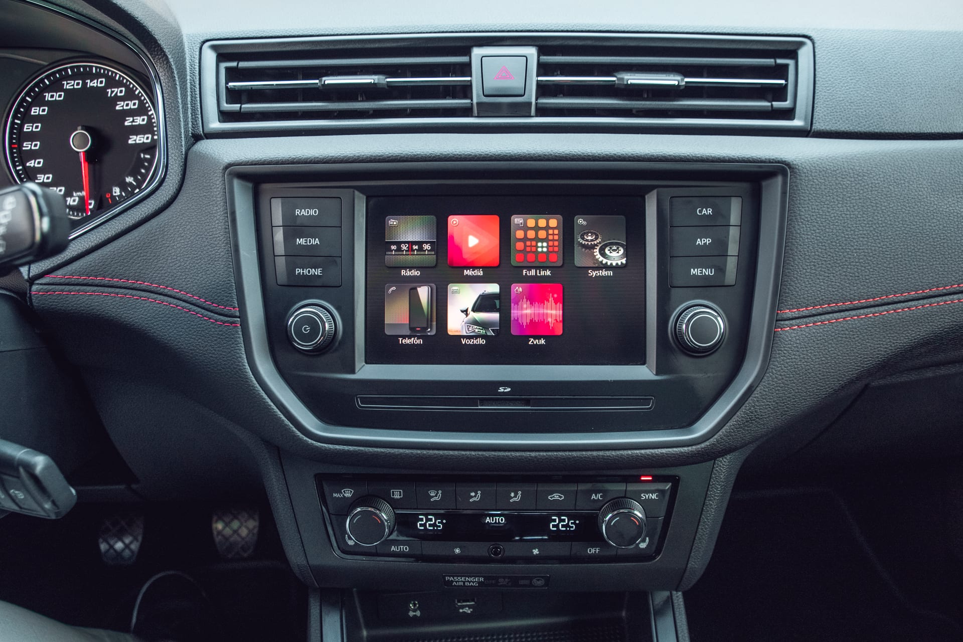Interiér je vzdušnejší, priestrannejší a kvalitnejší. Je vypracovaný hlavne z tvrdých plastov, no celkový dojem je primeraný triede a vôbec nepôsobí lacno. V prípade FR je palubovka obšitá umelou kožou, interiéru sa to hodí, dotvára to finálny dojem. Plasty však najviac pocítite vo výplniach dverí a stredovom tuneli, ktorý je, mimochodom, na triedu auta výrazne masívny. Športové sedadlá sú kapitola sama o sebe! Perfektne držia telo, sú pohodlné a vyzerajú dobre. Naša Ibiza ešte nemá digitálny prístrojový štít, no do ponuky sa neskôr dostane. Displej infotainmentu v našom prípade s uhlopriečkou 6,5 palca, za príplatok môžete mať celosklenenú plochu s rozmerom 8 palcov. Oceňujem praktický priečinok na telefón, privítal by som však aj indukčné nabíjanie. Ambientné osvetlenie je príjemným spestrením dojmu z interiéru, nečakajte však celú farebnú škálu, k dispozícii je len červená a biela farba.