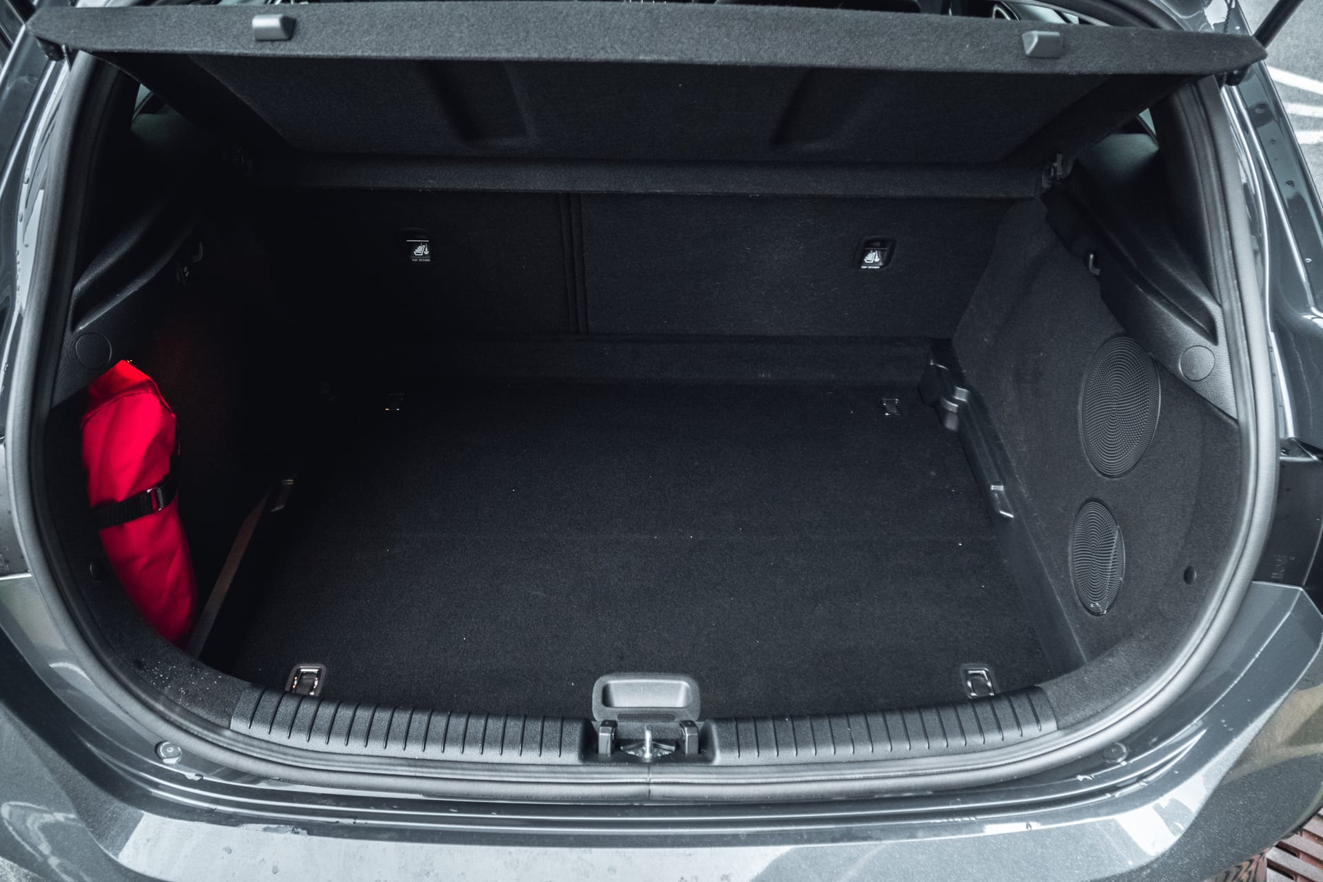 Ešte však chvíľku ostaňme v interiéri. Pod stredovou konzolou sa nachádza jednoduchý, no za to praktický box slúžiaci na bezdrôtové nabíjanie smartfónu. Ďalšie odkladacie priestory sa nachádzajú v stredovom boxe či v dverách. Pasažieri cestujúci na zadnej lavici budú mať o čosi menej komfortu, no taktiež sa nebudú mať na čo sťažovať, a to najmä kvôli skráteným sedákom. Predĺženie zadného previsu má za následok nárast batožinového priestoru o 15 litrov na finálnych 395 litrov. Ceed má dvojitú podlahu batožinového priestoru a nákupy alebo jednotlivé veci sa doň nakladajú lepšie. Po sklopení zadných sedadiel vznikne skoro rovná plocha.
