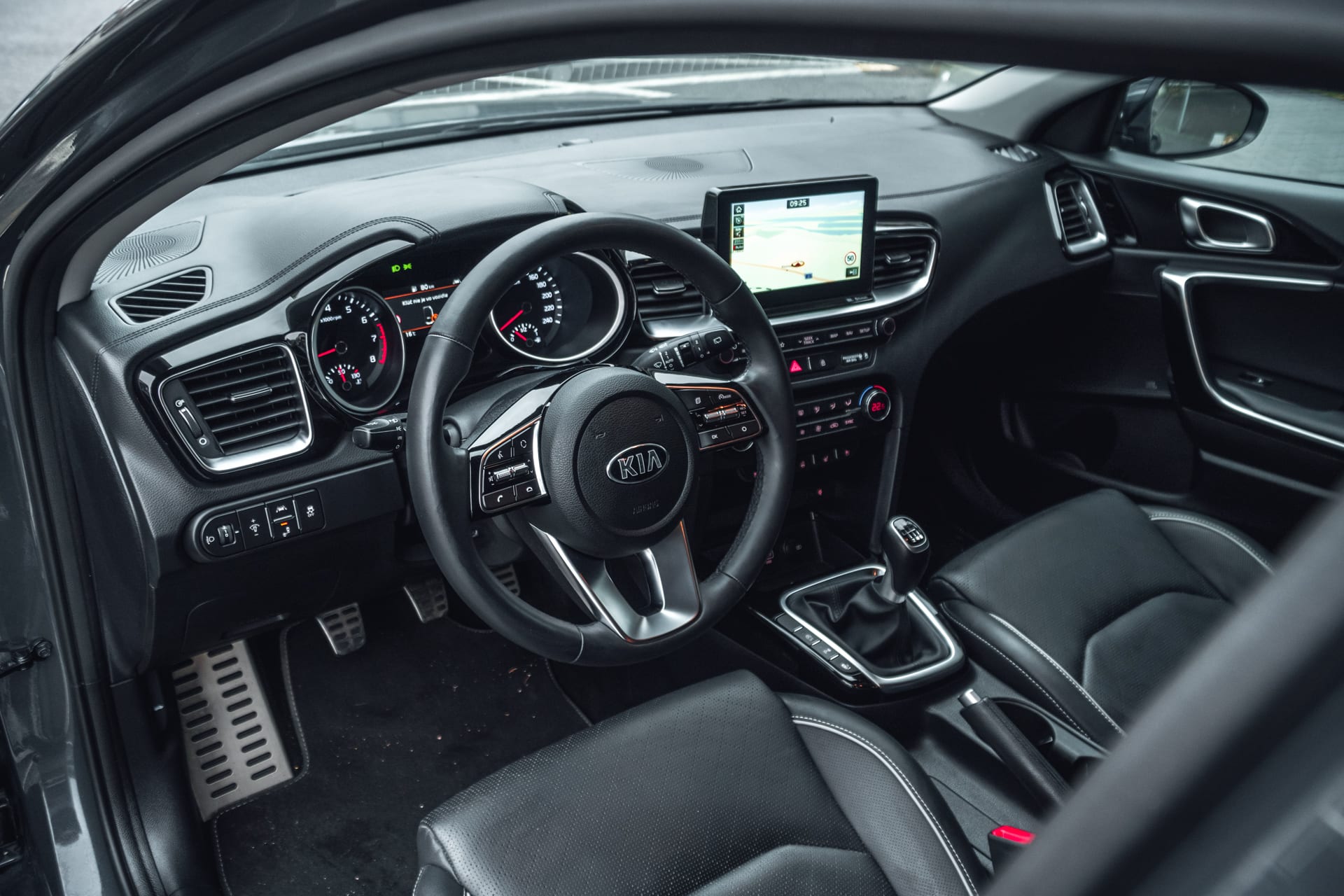 Prístrojovka síce používa klasické analógové budíky umiestnené v dvoch ováloch, no za virtuálnym kokpitom sa vám cnieť určite nebude, aj keď ho Kia pripravuje. Údaje sa dajú ľahko a s prehľadom čítať. Jediné, čo sa vám môže v tomto infotaimente pliesť, je prepínanie palubného počítača s tempomatom: nachádzajú sa totiž na rovnakej strane. Zabudnúť nesmieme na samostatne stojaci centrálny TFT displej, ktorý si zachoval „starý štýl“ a je stále prehľadný.