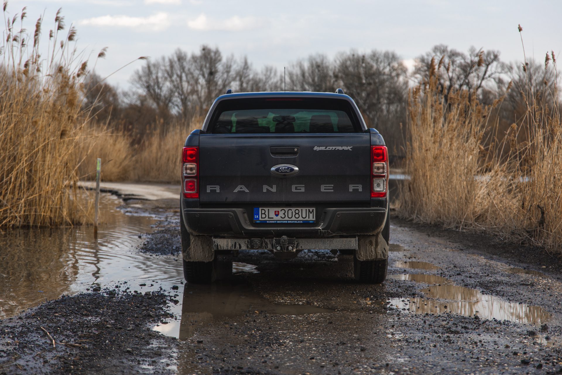 Terén miluje a vyžíva sa v ňom, taký je jednoducho divoký Ranger. Verte či nie, Ranger počas nášho testovacieho týždňa dostal skutočne zabrať. Obuté sme mali štandardné All Terain pneumatiky a tie bohato stačili. Dokonca väčšinu prekážok v podobe rozbahneného terénu a vyjazdených blatových koľají Ranger zvládol s pohonom výlučne zadnej nápravy. Úmyselne sme hľadali bod pokiaľ vám už pohon jednej nápravy stačiť nebude. A s poľutovaním vám musím oznámiť, že pokiaľ nerátame kríženie náprav, ten bod sme nenašli. Jednoducho Ranger je schopný prejsť takmer cez všetko. So zapnutým pohonom oboch náprav mierime cez rozbahnený potok kde nás už čakalo kríženie náprav v podobe koryta, no ako isto tušíte, Ranger opäť bez zaváhania boduje.