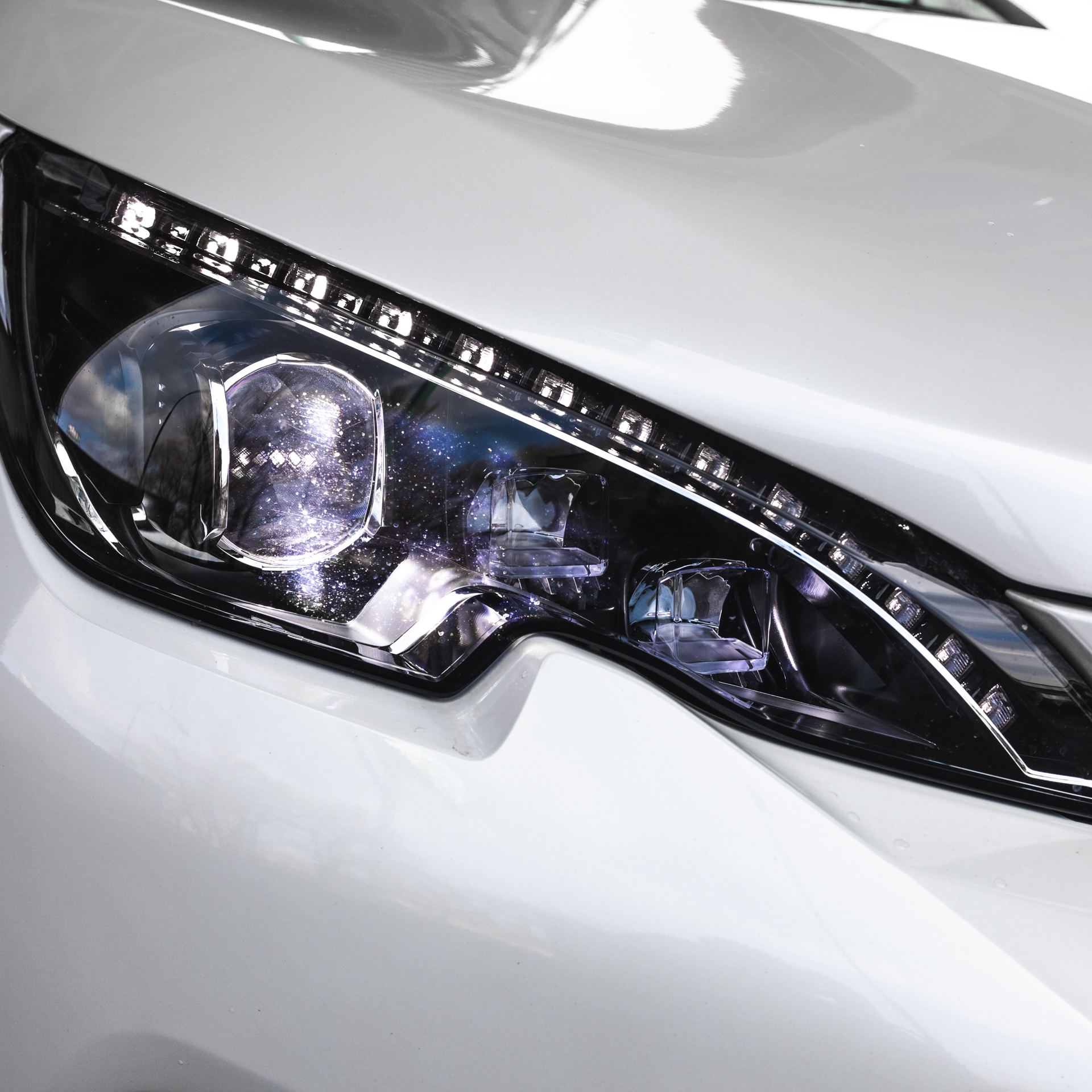 Aj facelift 308 bol inšpirovaný svojimi väčšími bratmi, crossovermi 3008 a 5008. Dokonale to vidieť na tvarovanej prednej maske s centrálnym vzpínajúcim sa levom. Horizontálne lamely boli nahradené chrómovými lištami a dodávajú tak vozidlu šmrnc. Sexappeal tomuto vozidlu dodalo lakovanie vozidla – biela perleť Nacré a decentné obutie na 17“ diskoch.