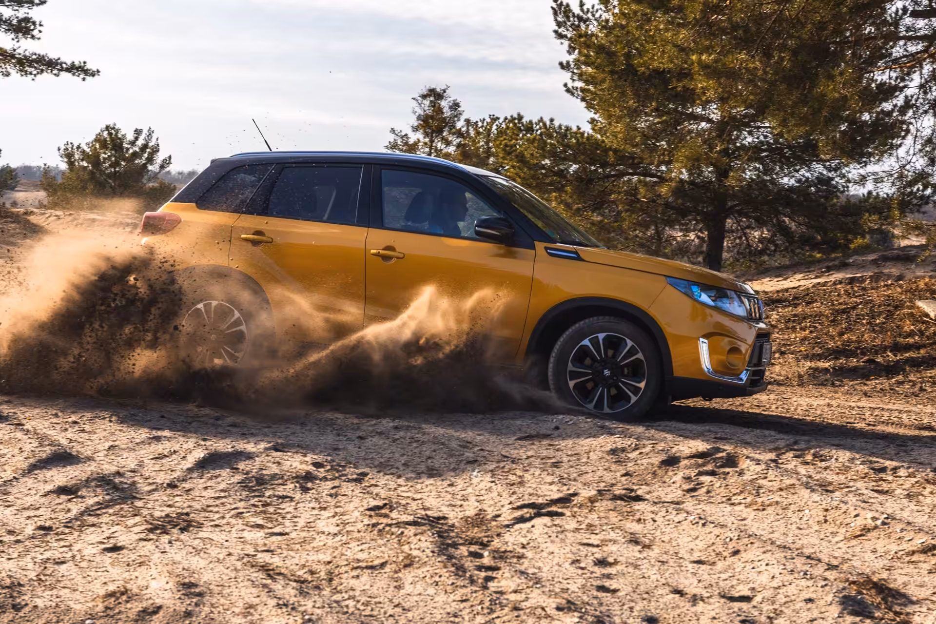 Vitaru sme zobrali na skúšku ohňom, na odľahlú lokáciu s piesočnatým terénom, ktorý je považovaný za ten najhorší na prejazdnosť. Vitara úprimne prekvapila svojimi skvelými terénnymi proporciami, vďaka skutočne krátkemu rázvoru a ešte kratším previsom, bez problémov zdolávala prírodné prekážky. Dopomohla jej k tomu aj svetlá výška s hodnotou 185 mm. Štvorkolka v núdzových situáciach zbytočne nepremýšľa a jednoducho pošle výkon na všetky štyri kolesá, práve vďaka tomu sa tak dostane z hraničných situácií ľahko von.