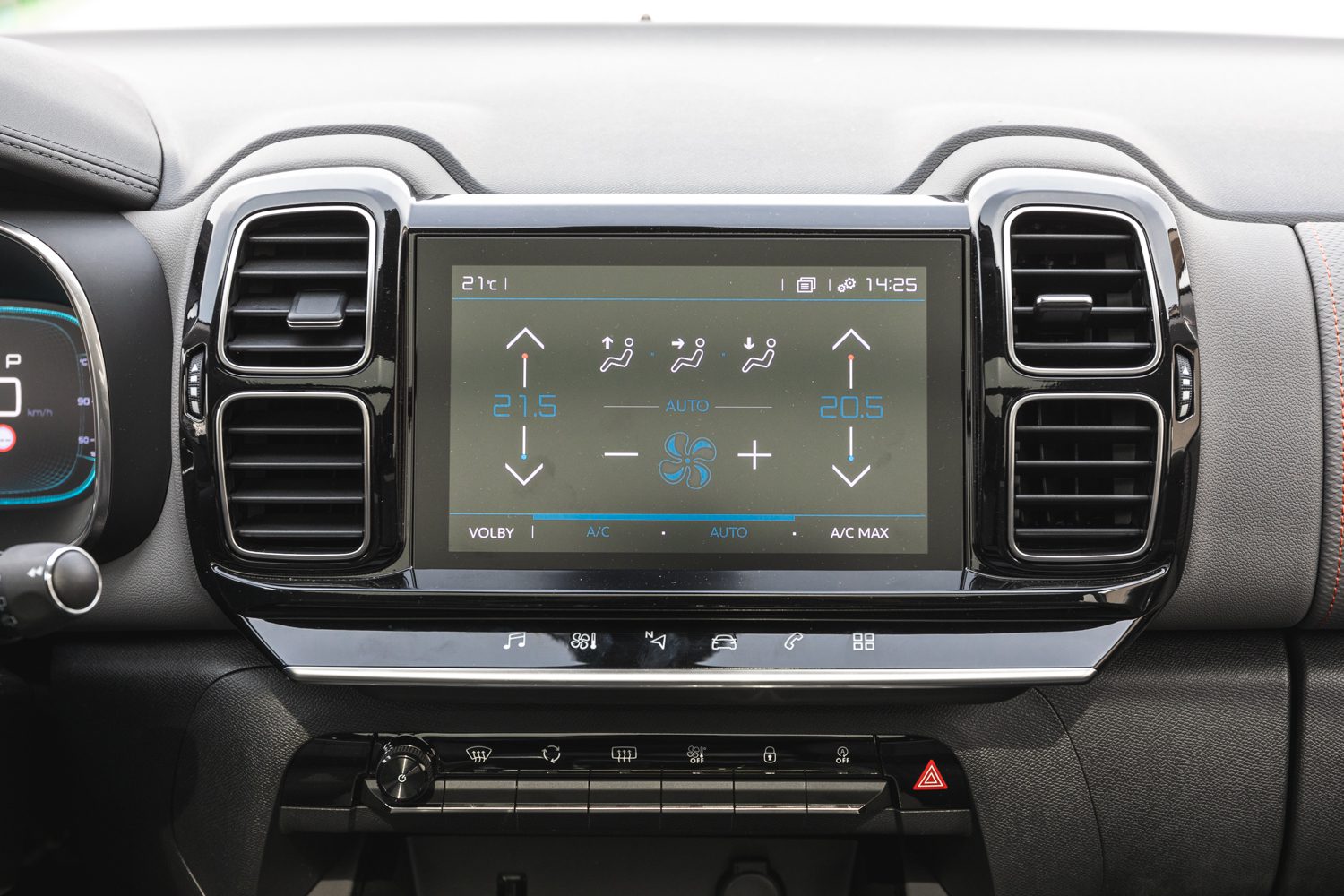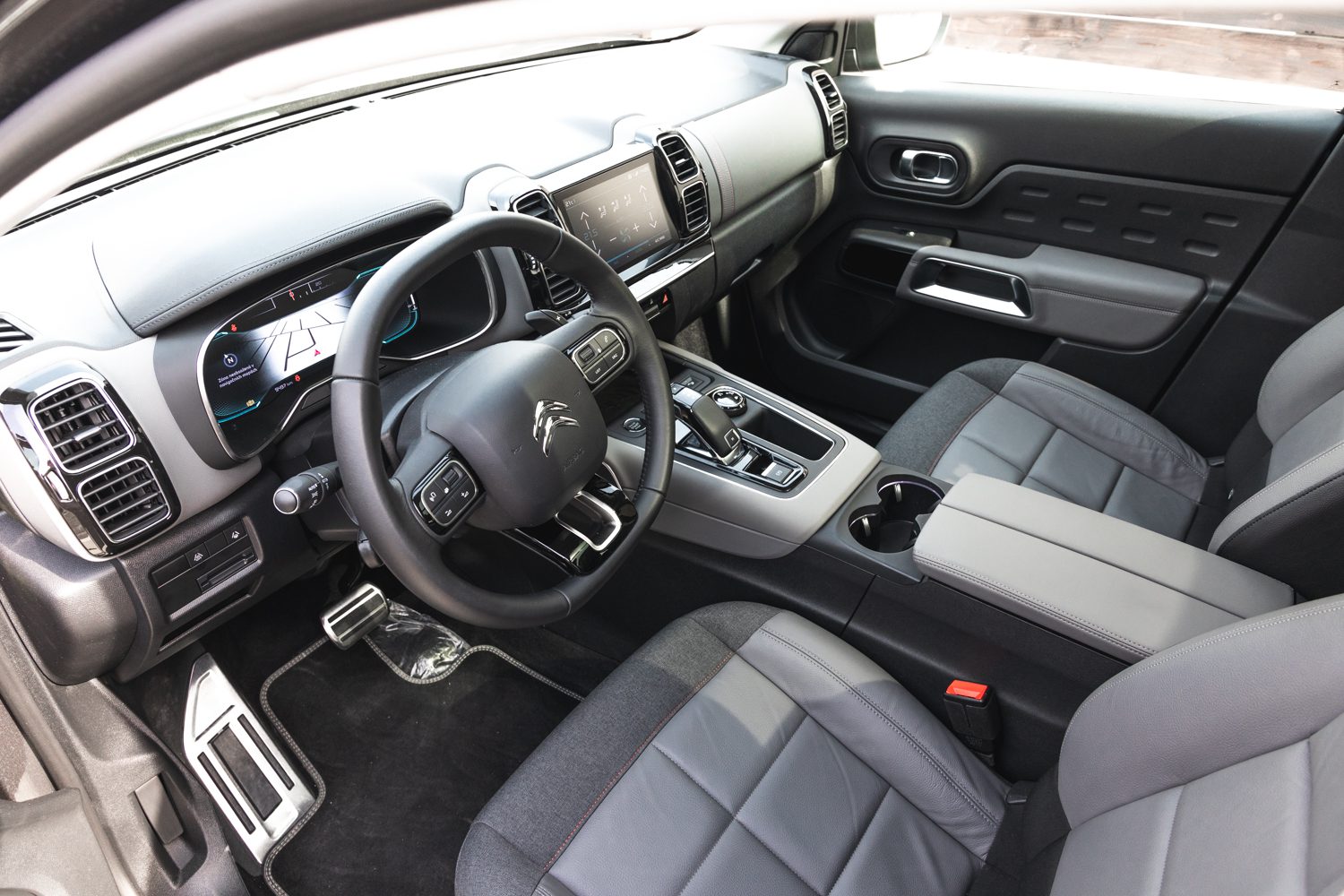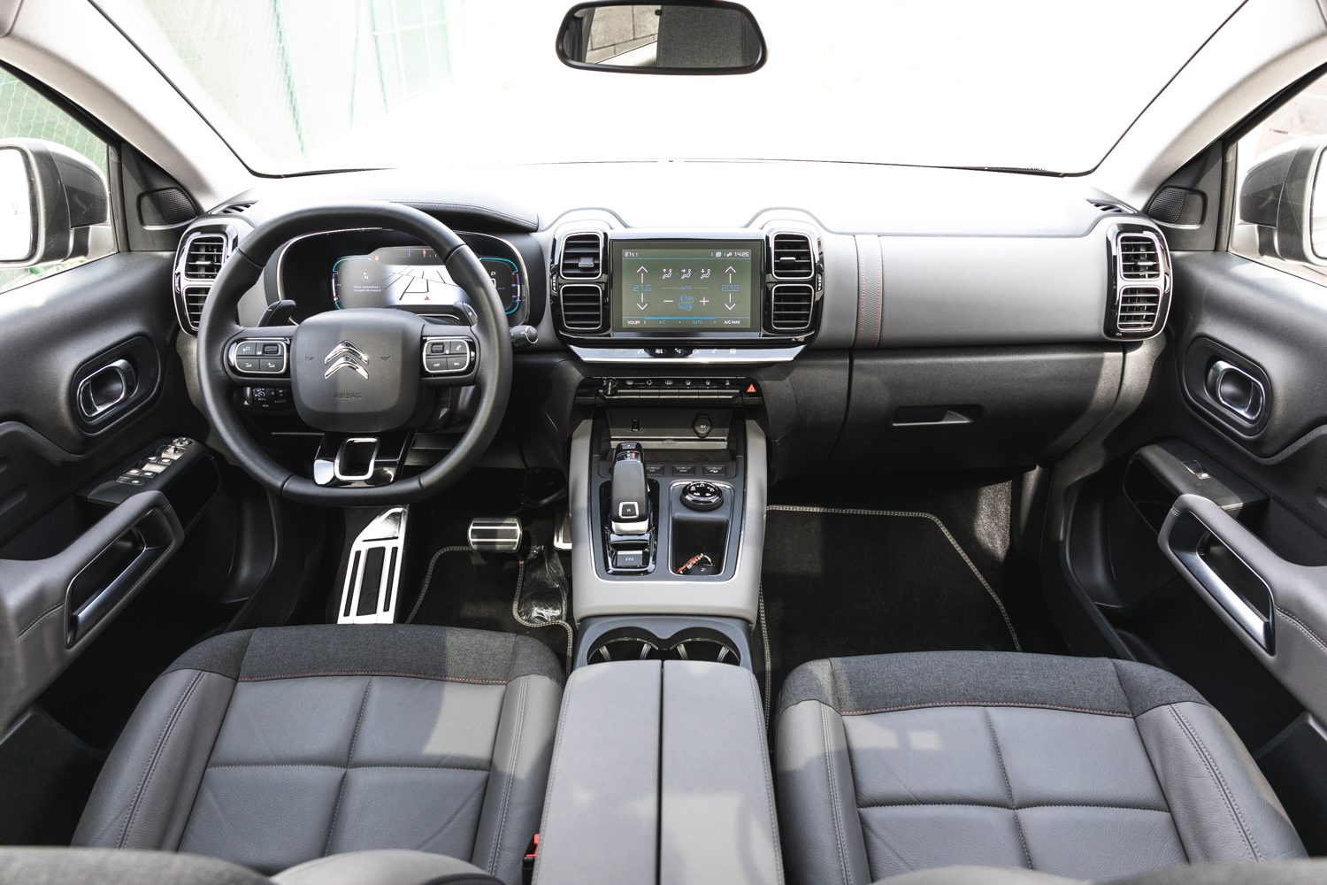Keďže sa jedná primárne o rodinné auto, určite bude dôležitým rozhodovacím faktorom aj pohodlie na palube. O to sa perfektne postarajú veľmi pohodlné sedadlá, z ktorých ma ani po dlhšej jazde nebolel chrbát. Jedinú nevýhodu v nich vidím len ak chcete s Aircrossom vybehnúť mimo spevnenej cesty. Vtedy je cítiť, že C5 Aircross nie je určený na terén. Ďalšou výbornou vecou pokiaľ máte vzadu deti je presklená strecha. V tomto prípade sa jednalo o kompletné presklenie, ktoré bolo veľkou výhodou vozu aj keď po okrajoch mierne znižovalo strop. Na zadných sedadlách je dostatok miesta nie len pre deti, ale aj pre plnohodnotných cestujúcich – potvrdené, odskúšané.
