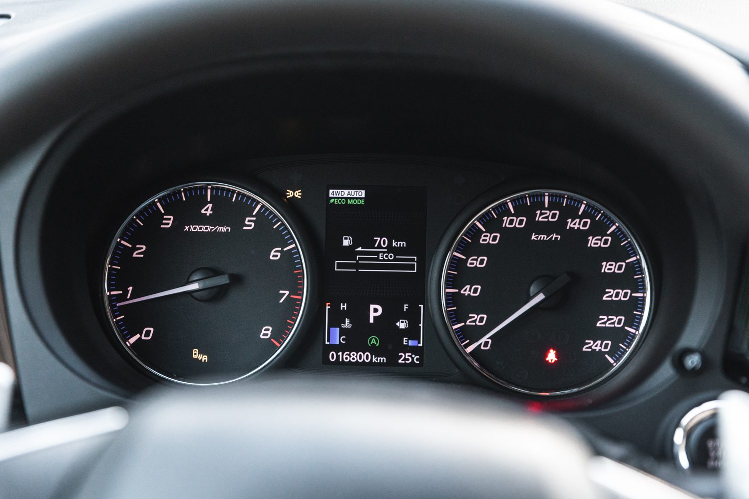 Aj napriek celej emočnej sínusoide, ktorou som si prešiel po istom čase strávenom v interiéri, na mňa auto stále pôsobilo jedinečnou atmosférou. Možno to pri navrhovaní dizajnéri ani nemali v pláne, no vďaka veľkým hranatým gombíkom rovnakého tvaru po celej palubovej doske, tlačidlu 4WD, veľkým spätným zrkadlám a výške posedu som niekedy zabudol, že sedím v radovom SUV. Tieto prvky spolu s pohonom 4×4 vo mne vyvolávali dojem, že naozaj sedím v offroadovom vozidle. Dokonca aj jediné dva USB porty v celom vozidle sú zaslepené krytkou rovnakého tvaru.