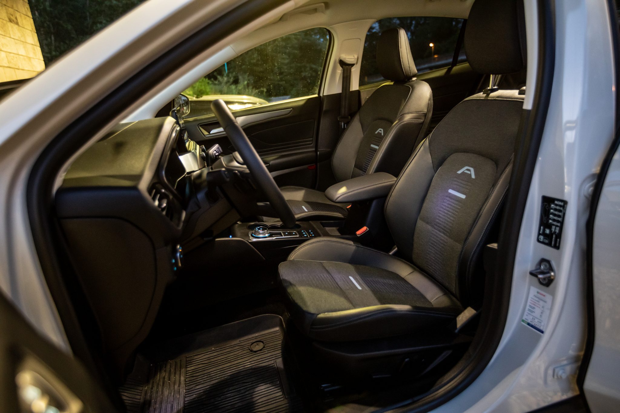 Ako prvé po nasadnutí Vám bliknú do očí pádla pod volantom a potom otočný volič automatickej prevodovky. Volič je síce menší, treba si naň zvyknúť, no bez problémov. Pádla sú síce plastové, dobre sedia do ruky, škoda toho sekvenčného preraďovania, ale k tomu neskôr. Interiér ako celok môže pôsobiť ako u štandardnej verzie. Nemýlite sa, no azda najväčším rozdielom sú gumené rohože s vaničkou. Vo Forde mysleli teda na to, že pokiaľ sa budete vracať zo zberu húb v lese, nedajbože sa rozprší a do auta prídete v gumákoch, zablatený, tak interiér ostane nedotknutý. Koberčeky iba vylejete, umyjete čistou vodou a všetko je vyriešené. Koberčeky pod zadným radom sa tiahnu celou šírkou auta, aj cez stredový tunel. Dokonalo premyslené.