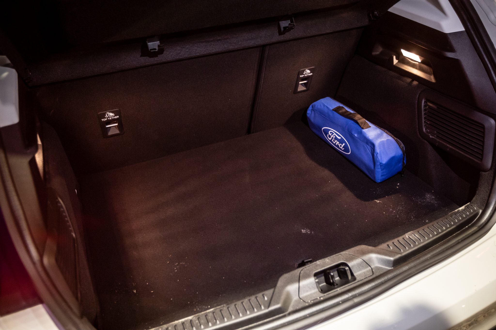 Ako prvé po nasadnutí Vám bliknú do očí pádla pod volantom a potom otočný volič automatickej prevodovky. Volič je síce menší, treba si naň zvyknúť, no bez problémov. Pádla sú síce plastové, dobre sedia do ruky, škoda toho sekvenčného preraďovania, ale k tomu neskôr. Interiér ako celok môže pôsobiť ako u štandardnej verzie. Nemýlite sa, no azda najväčším rozdielom sú gumené rohože s vaničkou. Vo Forde mysleli teda na to, že pokiaľ sa budete vracať zo zberu húb v lese, nedajbože sa rozprší a do auta prídete v gumákoch, zablatený, tak interiér ostane nedotknutý. Koberčeky iba vylejete, umyjete čistou vodou a všetko je vyriešené. Koberčeky pod zadným radom sa tiahnu celou šírkou auta, aj cez stredový tunel. Dokonalo premyslené.