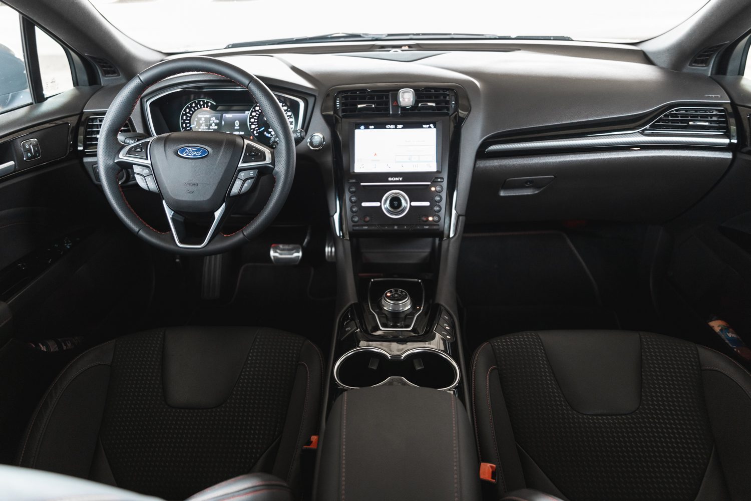 Palubná doska navodzuje atmosféru prepychovej prémiovky, ale nadšenie z celkového dojmu klesá, keď človek zbadá stredový panel. Funkcie a všetky potrebné nastavenia či už kúrenia alebo vyhrievania sedadiel tu síce sú, ale ich usporiadanie pôsobí dojmom Hi-fi veže z rokov deväťdesiatych. Že by toto bola tá spomienka, ktorú chcel Ford vo mne vyvolať?