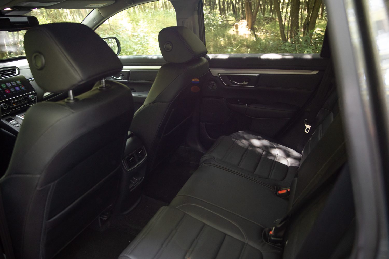 Oproti klasickej spaľovacej verzii, ktorú som mal na test, táto hybridná má v sebe ukrytý čierny interiér so striebornými doplnkami a mäkčenou palubnou doskou. Dané spojenie vo mne evokuje jemnú športovú eleganciu. Nová CR-V v medzigeneračnom zápolení narástla vo všetkých smeroch a tam, kde ste si minule sťažovali, teraz už nemôžete. Honda CR-V bola vždy známa svojou priestrannosťou. Teraz v tom aute môžete vyslovene ležať a stále budete mať priestor aj pre ďalších ľudí. Zadné sedadlá sú rozdelené v pomere 60:40 a uskromniť sa tak nemusia ani vyšší ľudia.