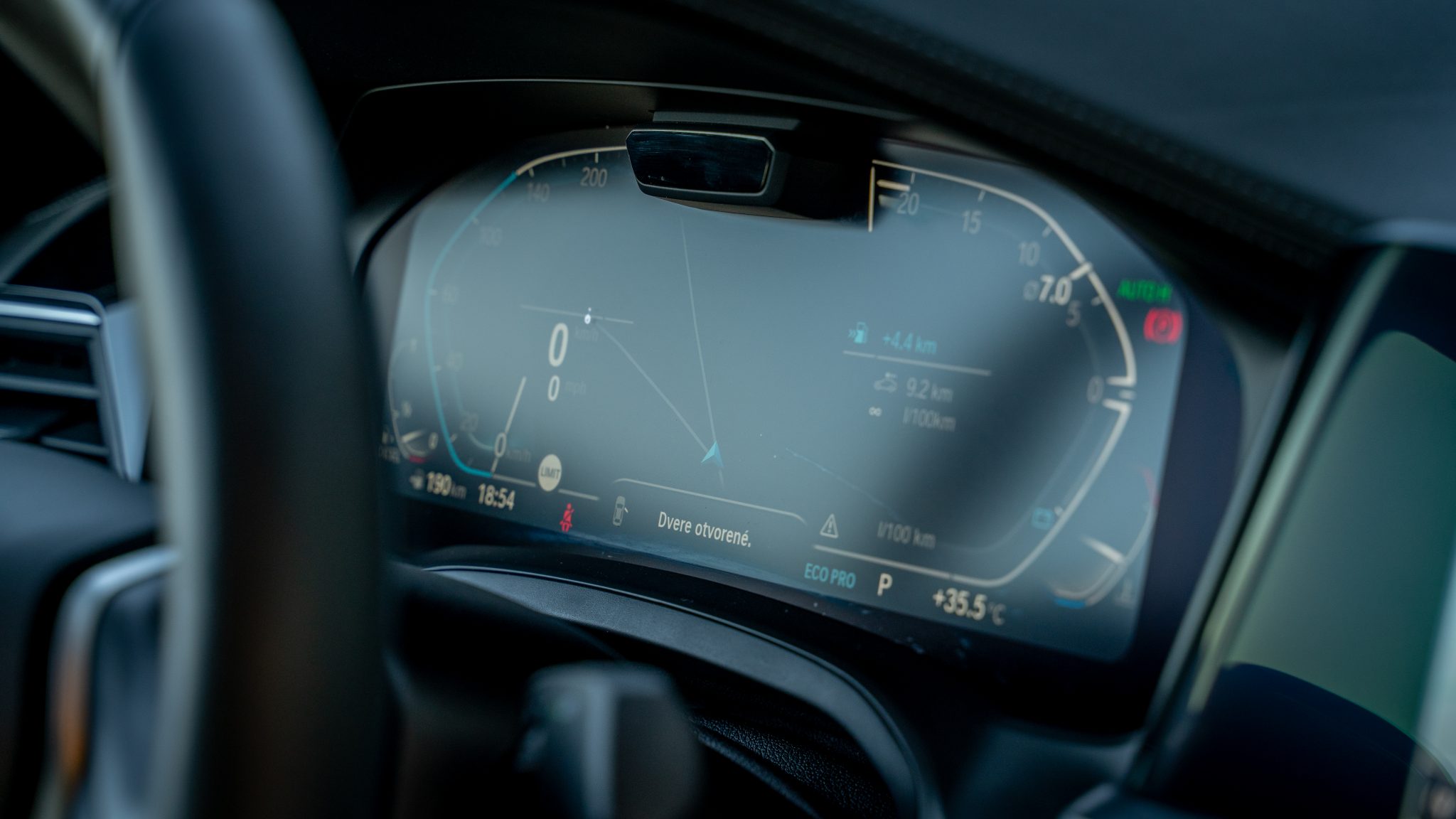 Pred vodičom sa nachádza nový digitálny prístrojový štít, myslím že nie som jediný, komu grafika príliš nevyhovuje. Taktiež možnosť jeho prispôsobenia je veľmi chabá, takmer nulová. Naopak, jeho čitateľnosť je perfektná. Uprostred sa navyše nachádza infračervená kamera, ktorá monitoruje to, či sa aktuálne na cestu pozeráte alebo nie. Táto kamera bude prepojená s adaptívnym tempomatom a umožní tak čiastočne automatizovanú jazdu. Zatiaľ však nie je funkčná.
