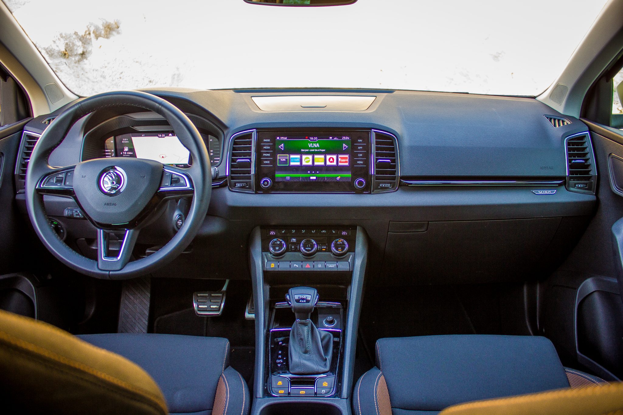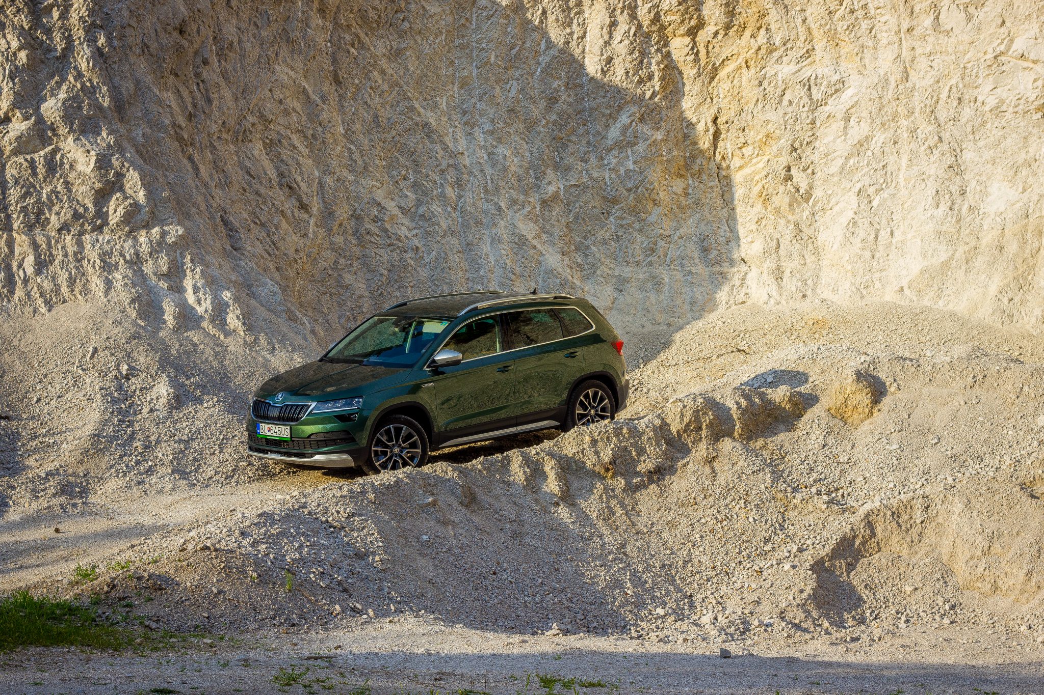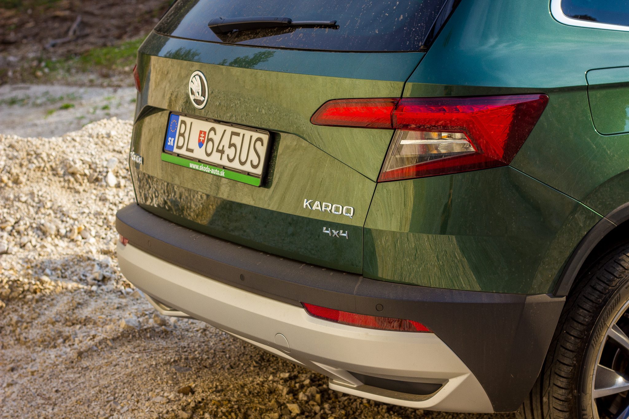 Scout výbavou podľa mňa uspokojí aj náročného motoristu, obsahuje solídnu zostavu prvkov aktívnej a pasívnej bezpečnosti ako aj komfortu. Dostanete napríklad spoľahlivú navigáciu, dvojzónovú automatickú klimatizáciu, vyhrievanie predných aj zadných sedadiel, vyhrievaný multifunkčný volant, parkovacie snímače vpredu aj vzadu, zadnú parkovaciu kameru, aj elektrickú zásuvky na 230 V pre zadných cestujúcich.  A tak, hoci je k dispozícii dlhý zoznam príplatkových prvkov, nevidím dôvod cenu auta ešte navyšovať. S jednou výnimkou. Prekvapilo ma, že hoci sa Karoq Scout výzorom hrá na drsný teréniak, pod dno batožinového priestoru vám v sérii pribalia iba súpravu na opravu defektu (v našom prípade bola nahradená príplatkovou dojazdovkou). Ale tak dobre, aj tak najväčší terénny problém, s ktorým sa toto auto stretne, bude obrubník medzi cestou a chodníkom. Aby ale neprišlo k omylu. Podvozok a pohon zvládol aj oveľa náročnejšie úlohy. Ak teda máte chatu, na ktorú musíte absolvovať terénnu vložku po nespevnenej ceste, prípadne ste rybár, je pre vás Karoq Scout dobrou voľbou.  Náročnejší terén by som však, podobne ako v prípade konkurenčných modelov podobnej konštrukcie, už asi radšej nepokúšal. Úprimne. Osemnástky kolesá a nízkoprofilové pneumatiky fakt nie sú práve terénnou výbavou.