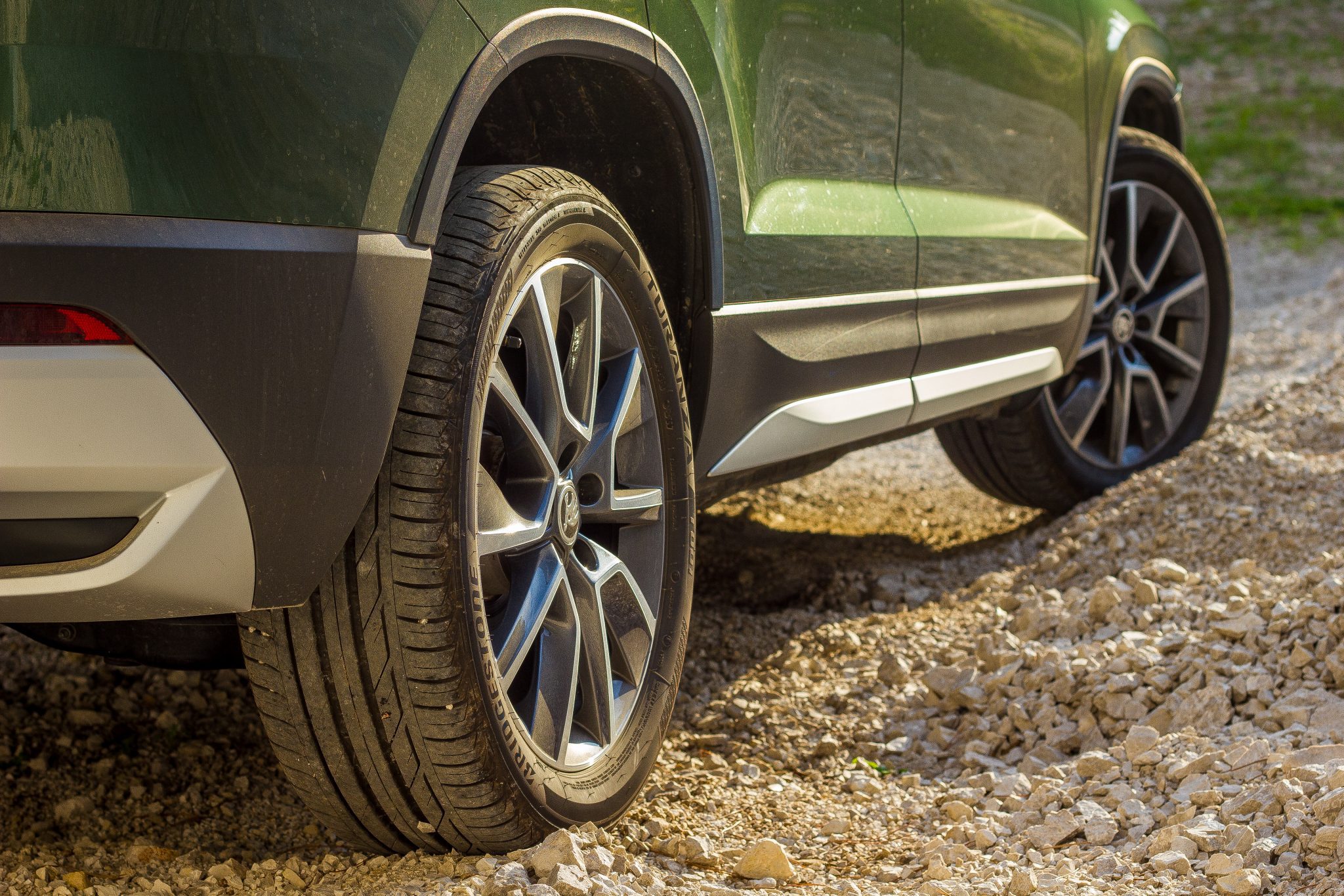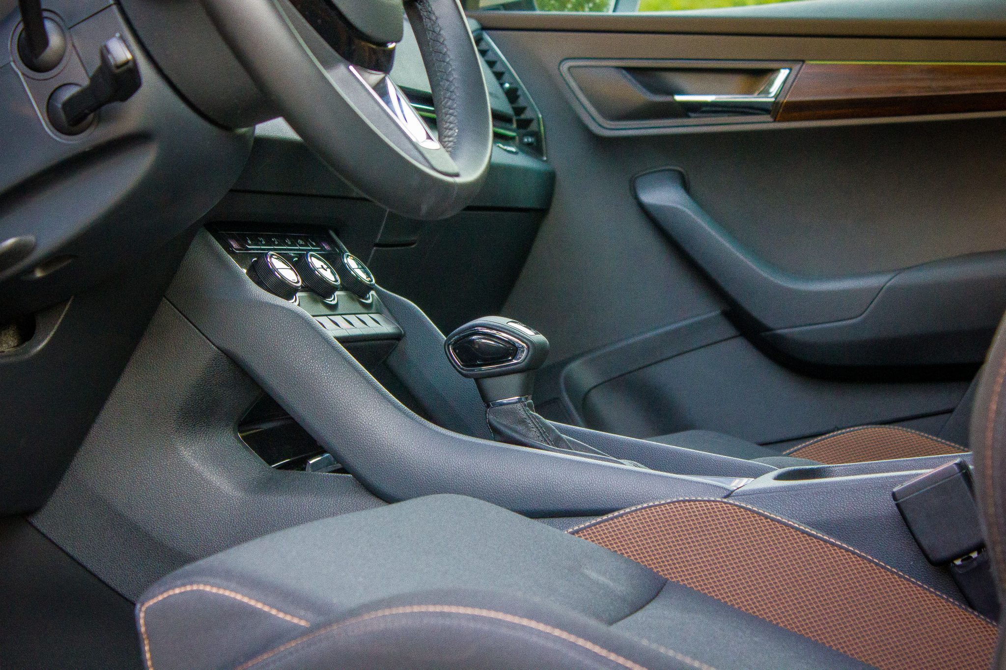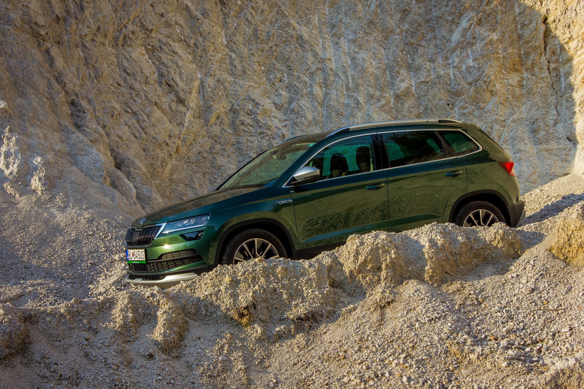 Scout výbavou podľa mňa uspokojí aj náročného motoristu, obsahuje solídnu zostavu prvkov aktívnej a pasívnej bezpečnosti ako aj komfortu. Dostanete napríklad spoľahlivú navigáciu, dvojzónovú automatickú klimatizáciu, vyhrievanie predných aj zadných sedadiel, vyhrievaný multifunkčný volant, parkovacie snímače vpredu aj vzadu, zadnú parkovaciu kameru, aj elektrickú zásuvky na 230 V pre zadných cestujúcich.  A tak, hoci je k dispozícii dlhý zoznam príplatkových prvkov, nevidím dôvod cenu auta ešte navyšovať. S jednou výnimkou. Prekvapilo ma, že hoci sa Karoq Scout výzorom hrá na drsný teréniak, pod dno batožinového priestoru vám v sérii pribalia iba súpravu na opravu defektu (v našom prípade bola nahradená príplatkovou dojazdovkou). Ale tak dobre, aj tak najväčší terénny problém, s ktorým sa toto auto stretne, bude obrubník medzi cestou a chodníkom. Aby ale neprišlo k omylu. Podvozok a pohon zvládol aj oveľa náročnejšie úlohy. Ak teda máte chatu, na ktorú musíte absolvovať terénnu vložku po nespevnenej ceste, prípadne ste rybár, je pre vás Karoq Scout dobrou voľbou.  Náročnejší terén by som však, podobne ako v prípade konkurenčných modelov podobnej konštrukcie, už asi radšej nepokúšal. Úprimne. Osemnástky kolesá a nízkoprofilové pneumatiky fakt nie sú práve terénnou výbavou.