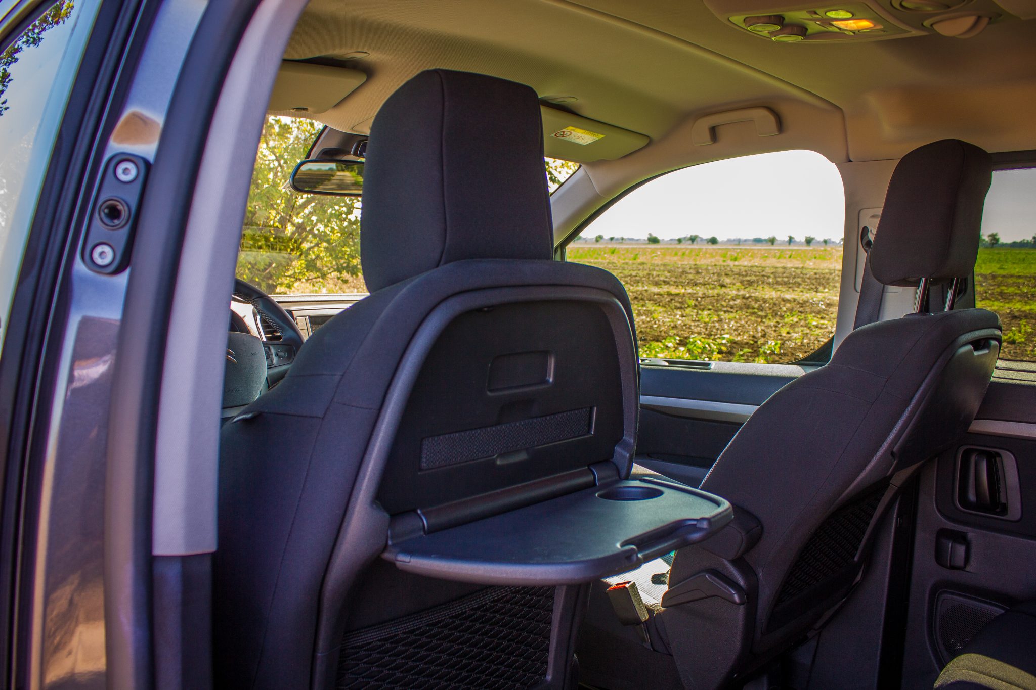 V okolí sedadiel nechýbajú úložné priestory, držiak na nápoje a elektrická zásuvka je napríklad k dispozícii aj pre sedadlá v treťom rade. Zadní cestujúci nie sú ukrátení ani v prípade nastavovania klimatizácie. Výduchy aj ovládače automobilka umiestnila do praktickej stropnej konzoly. Toto riešenie je výborné hneď z niekoľkých dôvodov. Prvým je samozrejme funkčnosť a druhým je to, že na ne deti nedosiahnu, a tak sa s nimi nemôžu hrať. V prípade regulácie prúdiaceho vzduchu automobilka siahla po konštrukčne a tvarovo jednoduchom, no maximálne funkčnom a mechanicky odolnom riešení. Nie vždy treba špekulovať nad dizajnérskym šperkom, primárna by mala byť funkčnosť. A v tomto prípade je bez výhrad. Hoci malo auto okná so zatmavenými sklami, vo dverách máte k dispozícii aj výsuvné roletky. Vhod prídu napríklad keď dieťa zaspí.