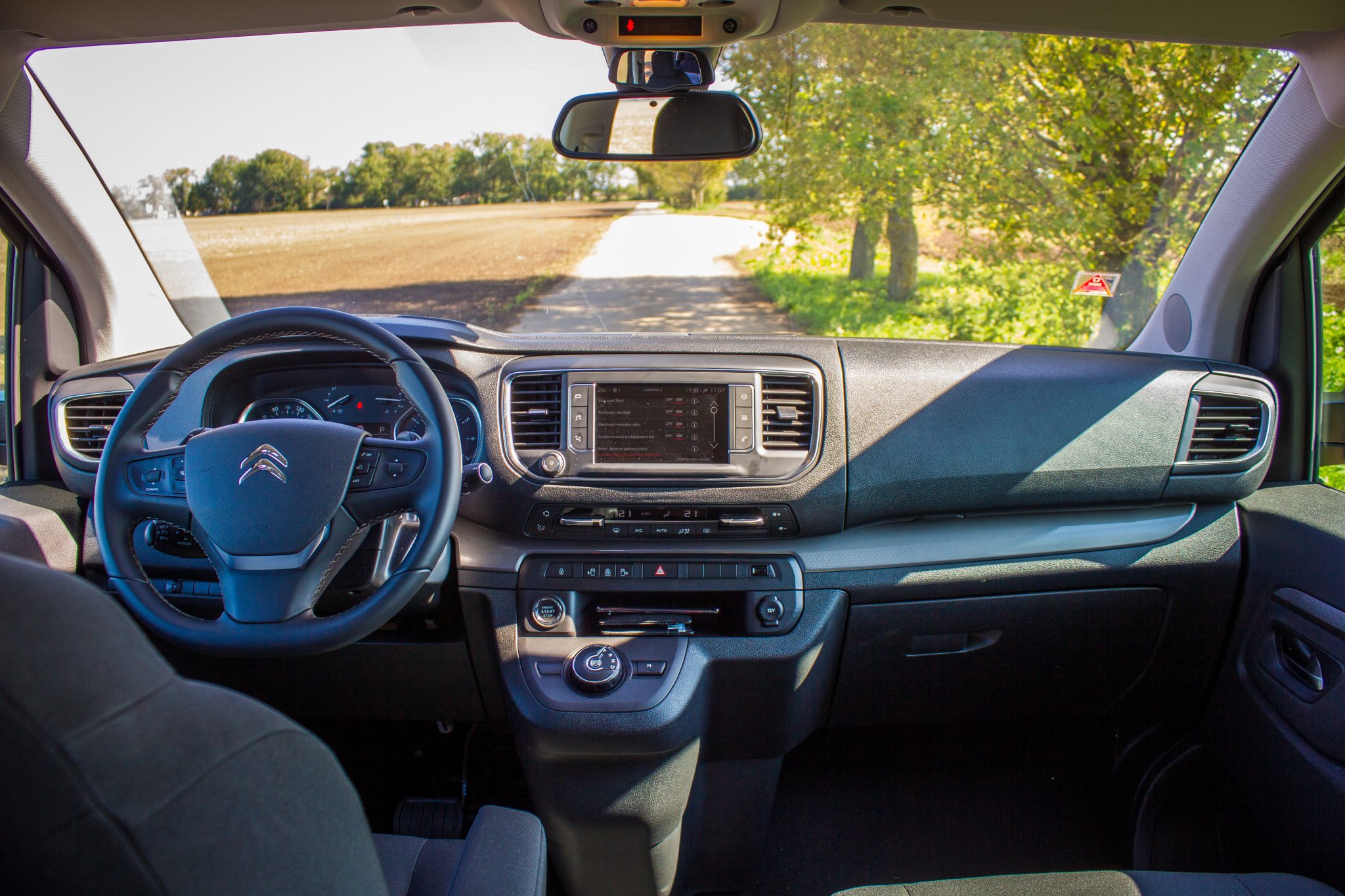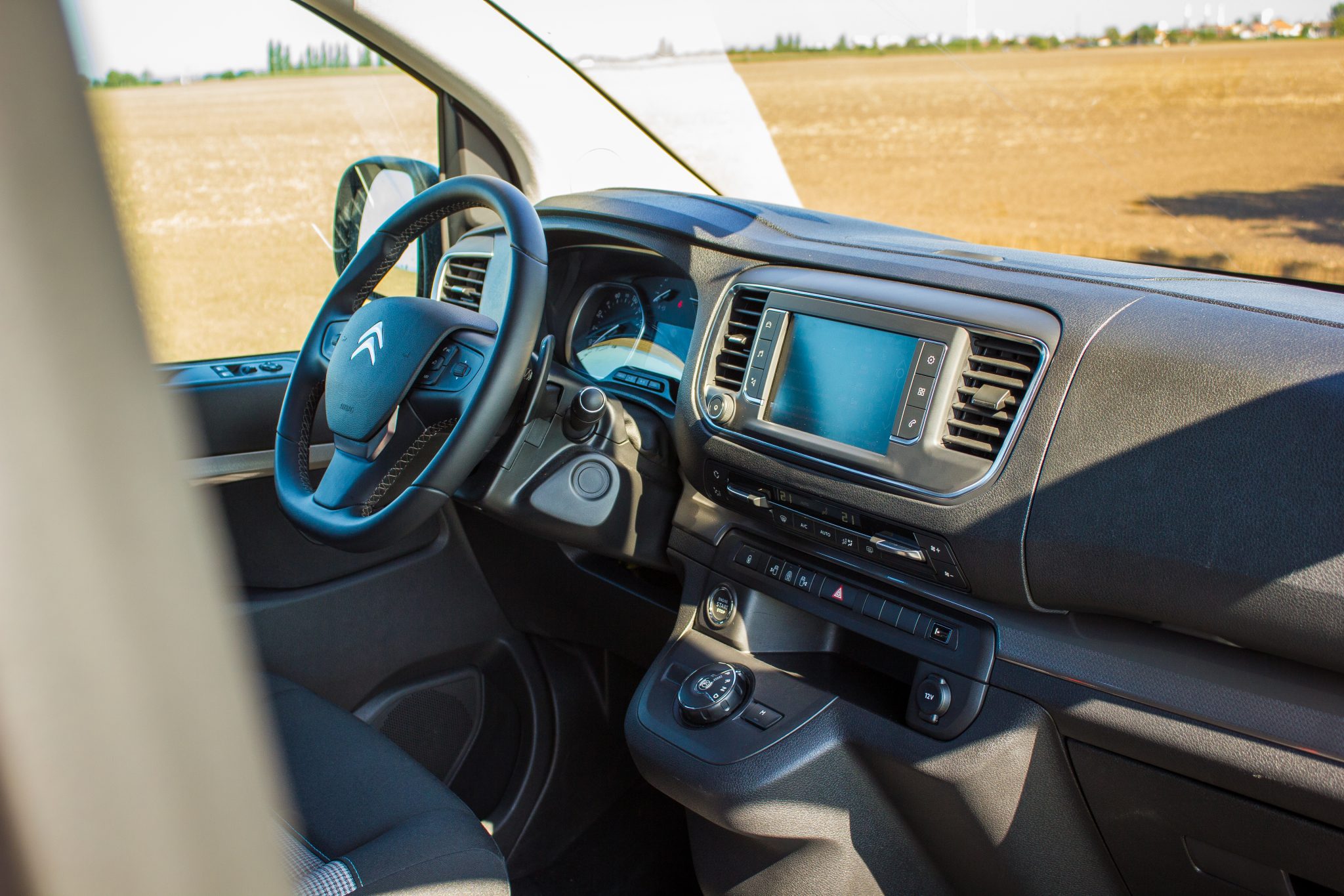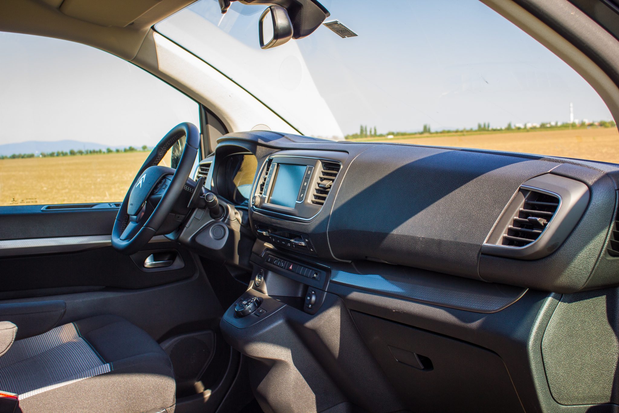 Prístrojová doska je tvarovo kompaktná, ovládacie a informatívne prvky sú umiestnené prehľadne a sú v priamom dosahu vodiča. Poteší, že klimatizácia má klasický mechanický ovládací panel, dobre čitateľný je dotykový displej multimediálneho systému. Konštruktér do auta samozrejme prepašoval aj jednu špecialitu. Sedíme predsa v Citroëne, takže je to v poriadku. Osemstupňový automat sa neovláda klasickou pákou, ale otočným ovládačom. Ak by bolo toto auto určené pre dynamického mladíka, krčil by som nosom. Ale nie je. Takže toto riešenie beriem pragmaticky, vďaka nemu je napríklad výborne prístupná odkladacia polička a na prácu s ovládačom som si po pár dňoch zvykol.