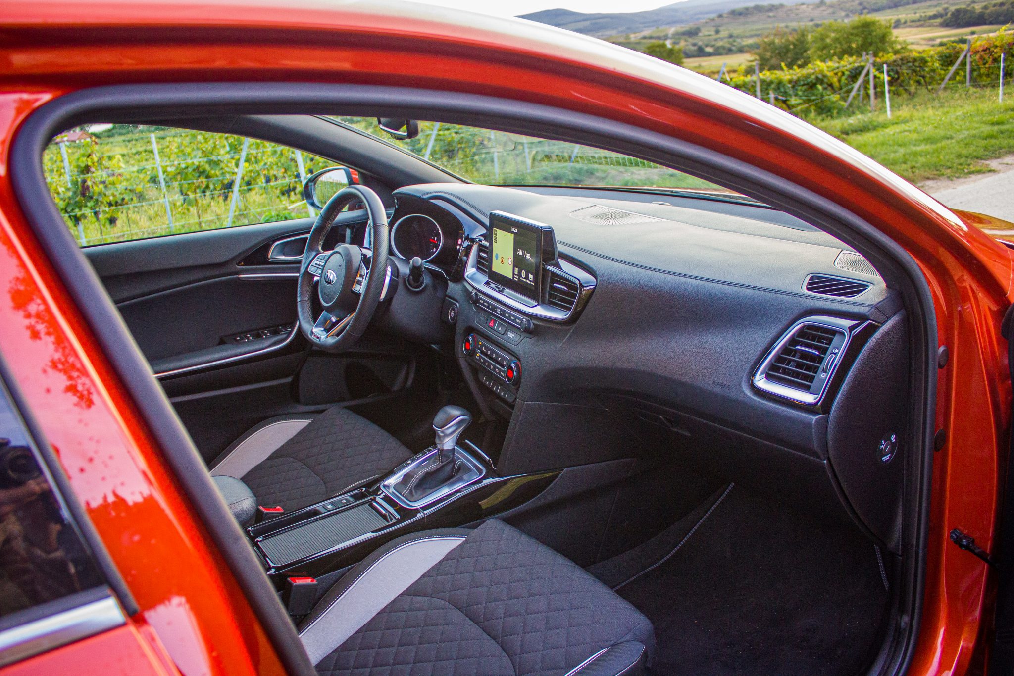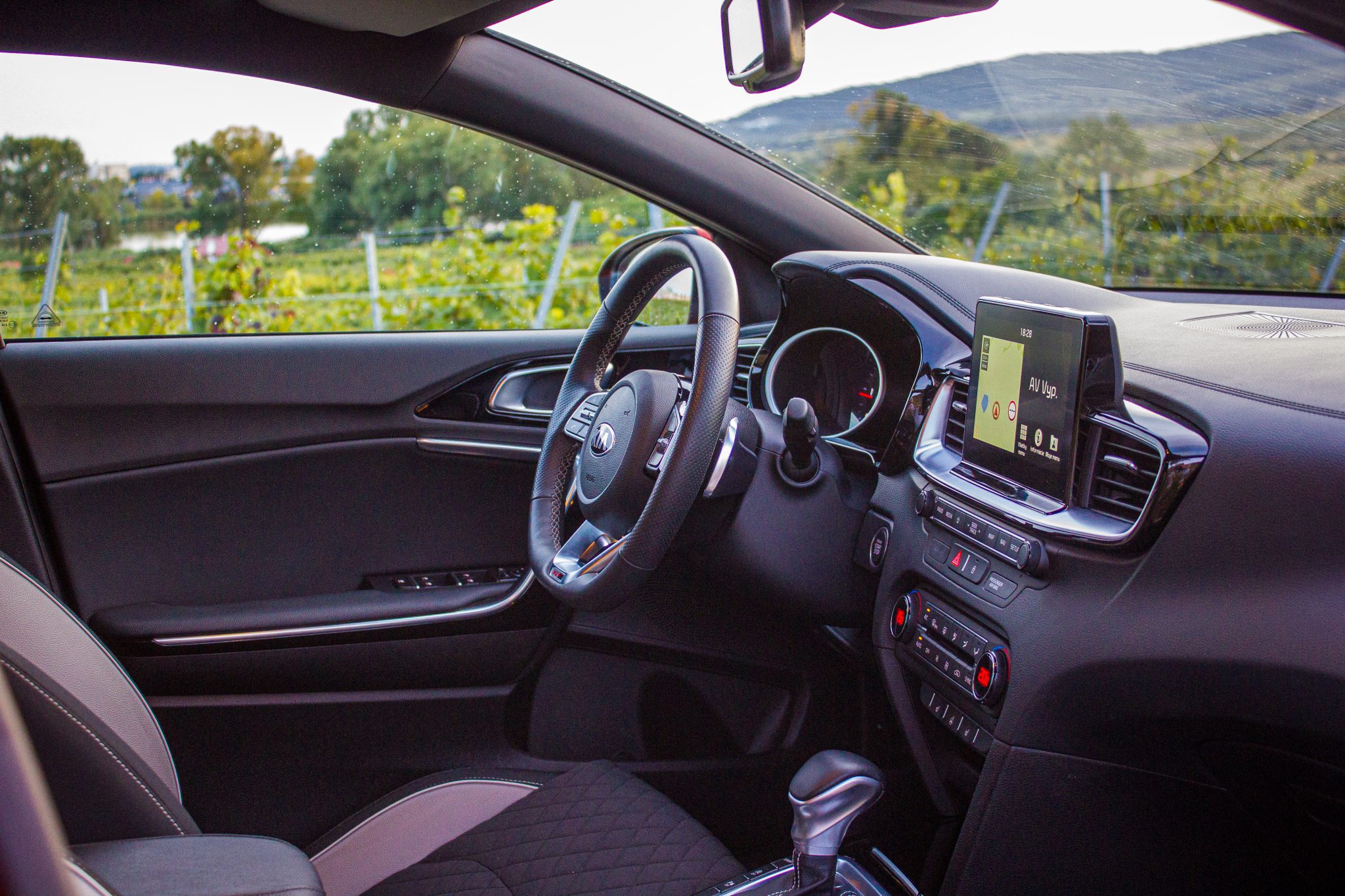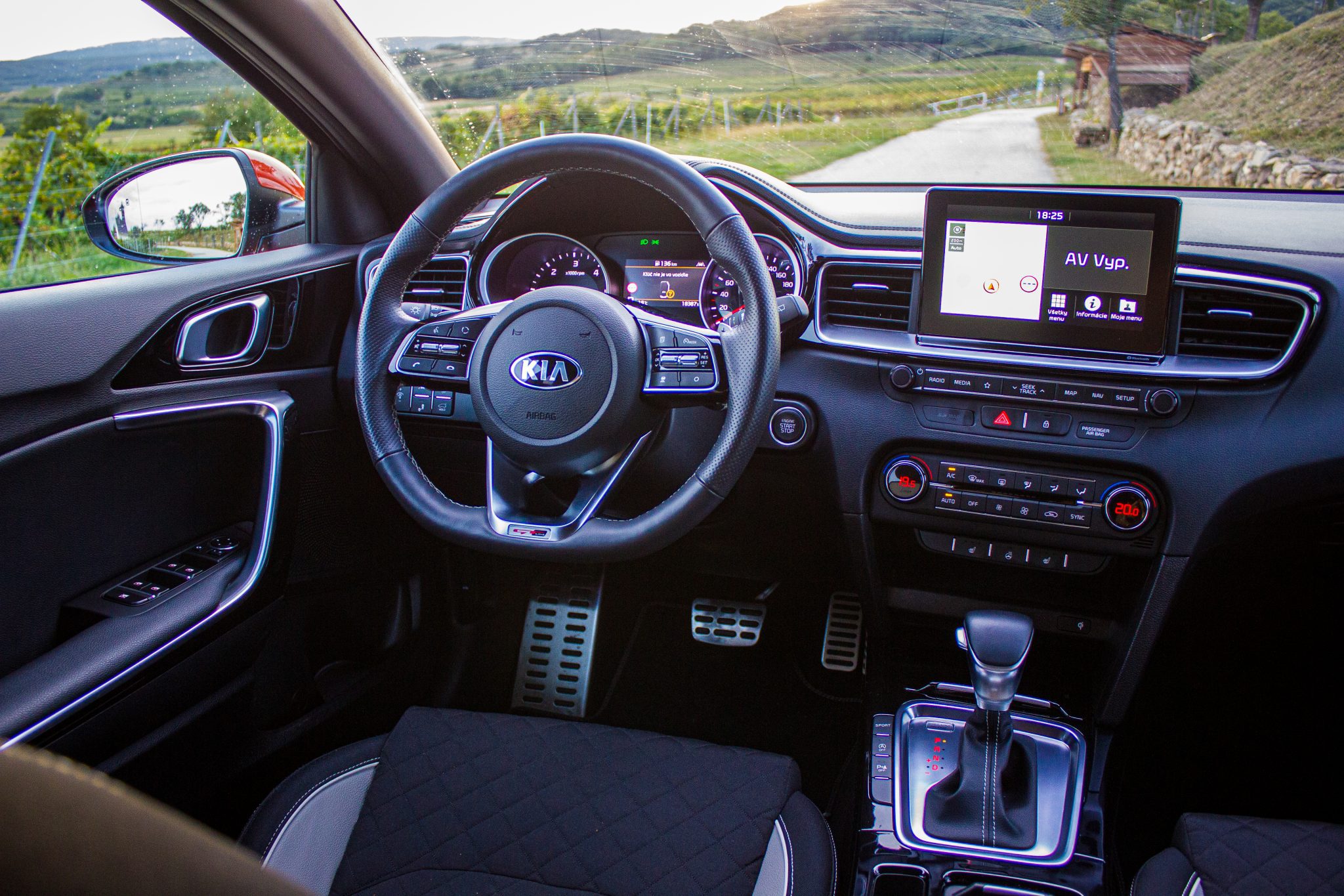 A keď sme už pri interiéri a navyše špičkovej výbave GT Line, tak sa na ňu pozrime podrobnejšie. Bežný Ceed v jednoduchších výbavových stupňoch vyzerá možno trochu stroho. Testovaný ProCeed GT Line práve naopak.