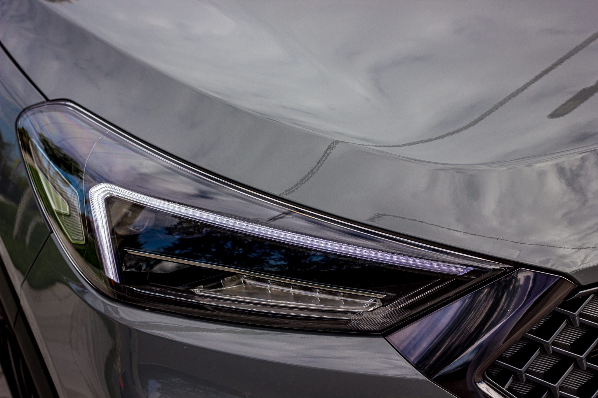 Domnienky a špekulácie nechajme tak a prejdime rovno k našej úvodnej otázke. Exteriér Tucsonu N-Line nesie výrazné agresívnejšie tvarovanie. V prednej časti si všimnete športový nárazník s denným svietením v tvare bumerangu a kaskádovitú masku chladiča. Tucson pôsobí akoby bol od začiatku  tvarovaný práve pre N-Line.