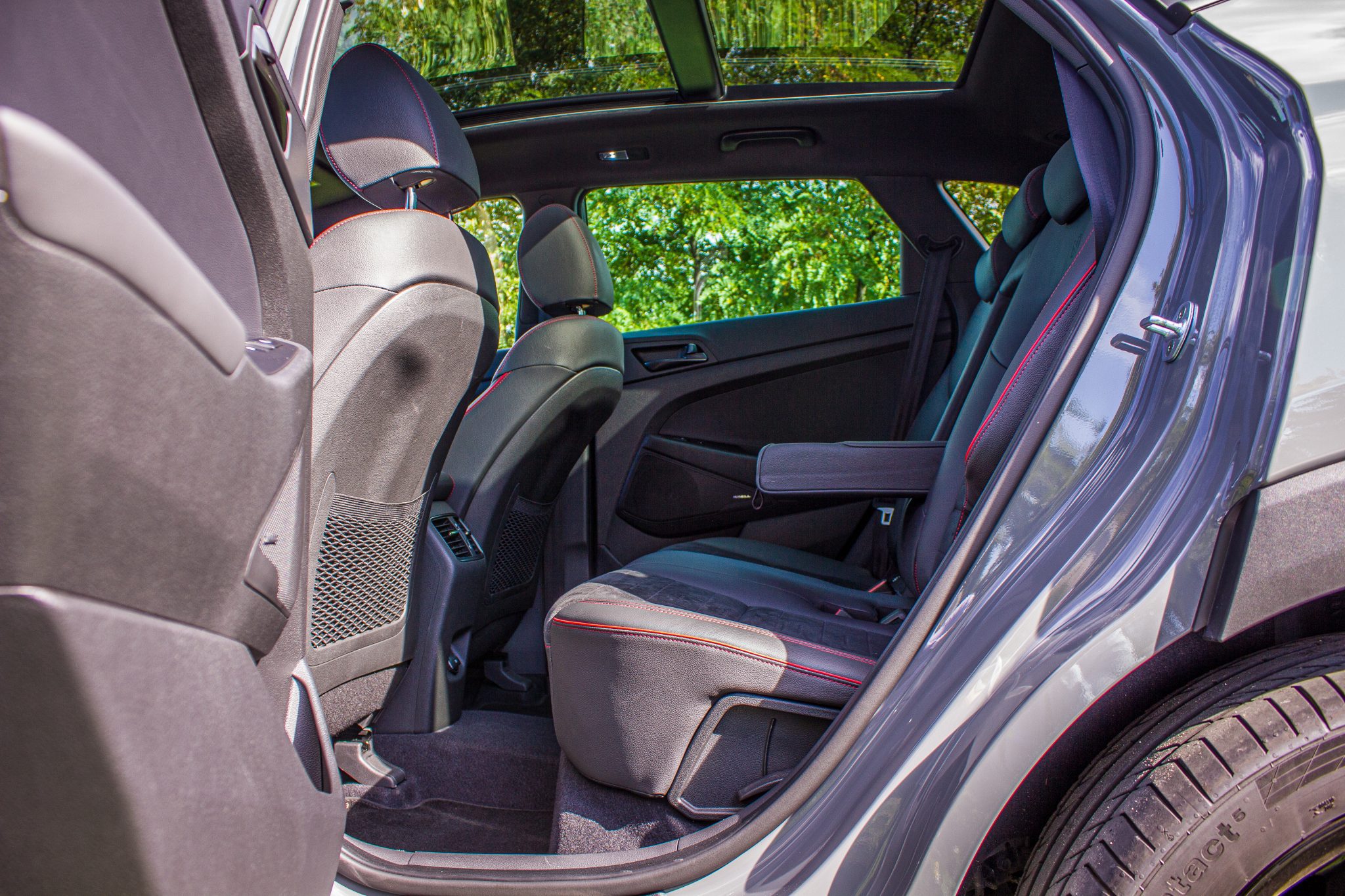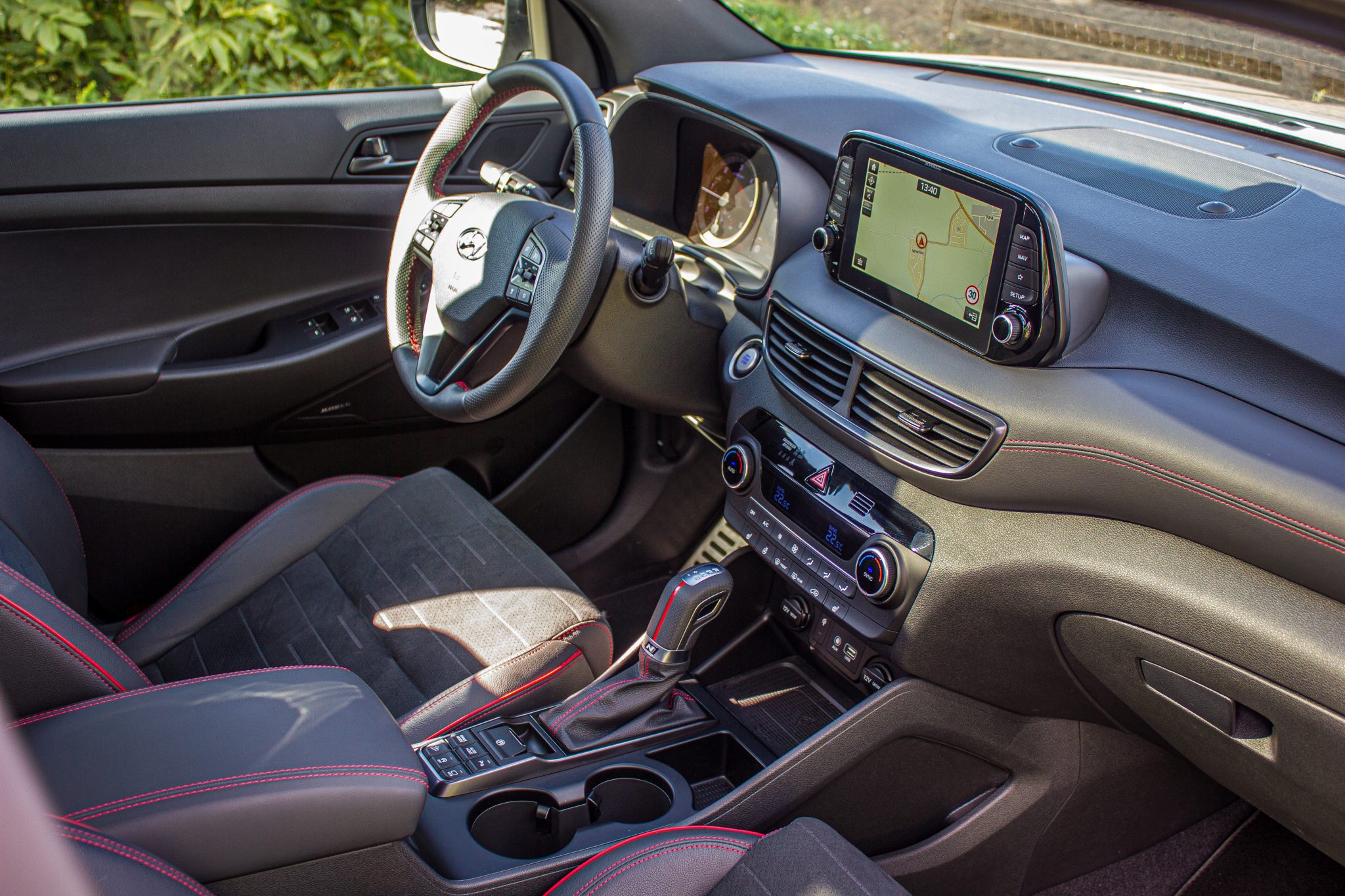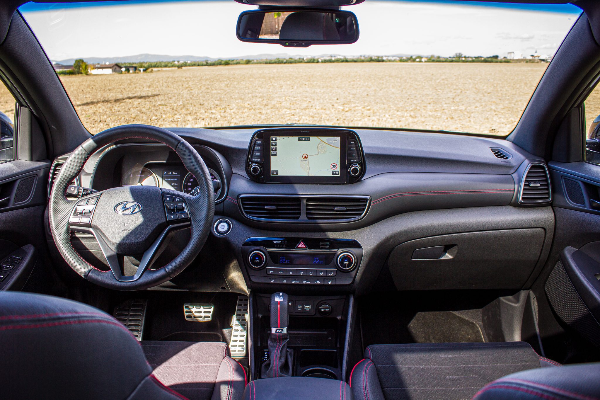 V interiéri pôsobí Tucson N-Line o čosi športovejšie než bežný Tucson. Vďačí za to predovšetkým kombinácií meteriálov ktoré sú použité na sedadlá či výplniach dverí a obkladov. Všetkému dodáva jedinečný punc červené prešívanie a emblém N na sedadlách. Výrazným prvkom je tiež volič 8-stupňovej automatickej prevodovky, ktorý si jednoducho nezameníte. Jediným prvkom ktorý mi v interiéri nesedel, je práve volant, pôsobí až príliš zastaralo a jeho veniec je príliš tenký. Celkovo si Tucson vo verzií N-Line zachováva ešte dostatok konzervatívnosti a skôr nám to príde tak, že dizajnéri si šetrili kreácie pre niečo lepšie!