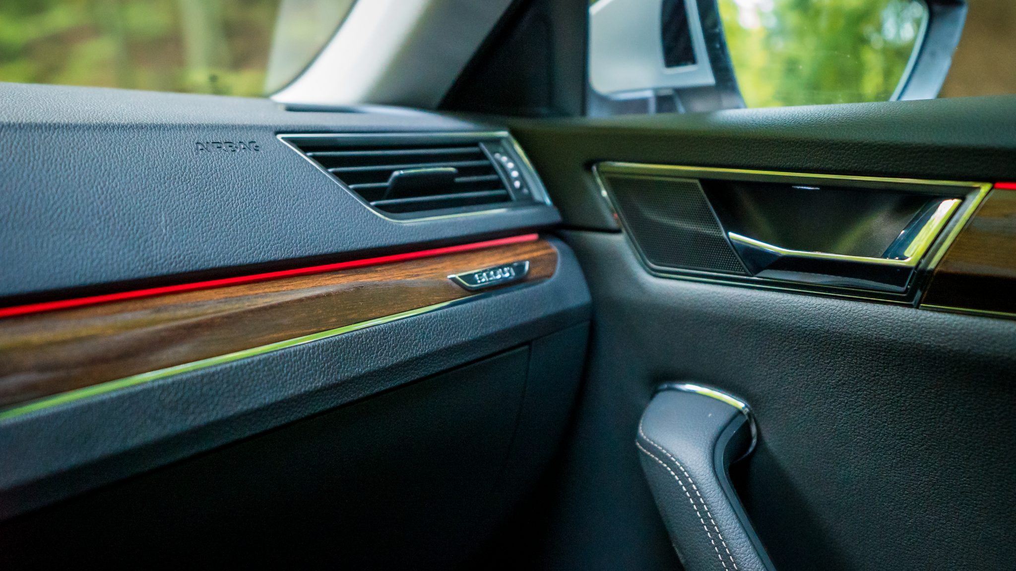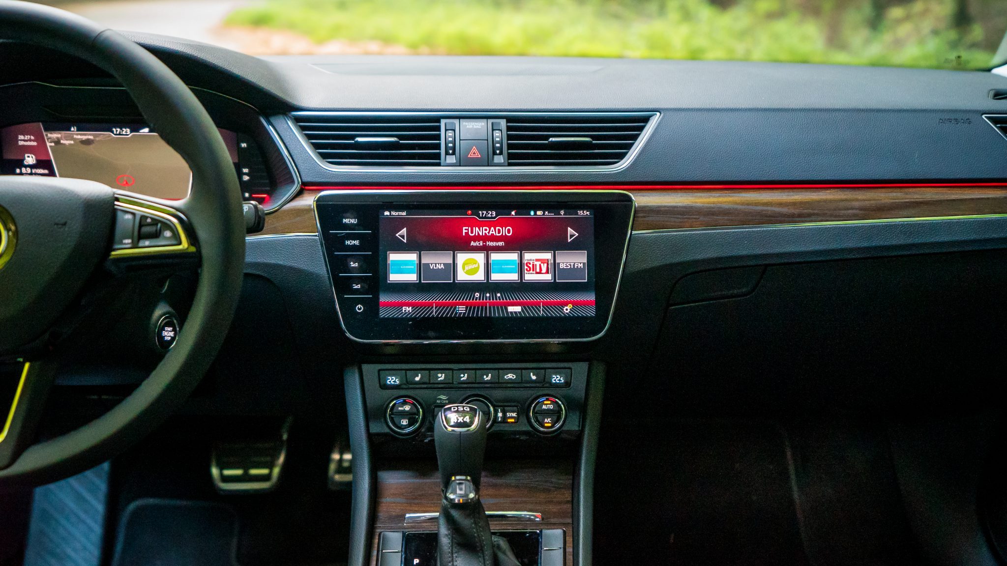 Podobný postup automobilka použila aj v prípade interiéru. Superb je aktuálne najluxusnejším modelom značky Škoda, a tak sú úpravy podľa očakávania skôr decentné. Nám sa napríklad páči, že čierne plastové lišty s vysokým leskom, na ktorých vidno každé zrniečko prachu (špeciálne okolo kulisy radenia), nahradil drevený vzor s jemným lakom. Autu dodávajú serióznosť a pocit luxusu.
