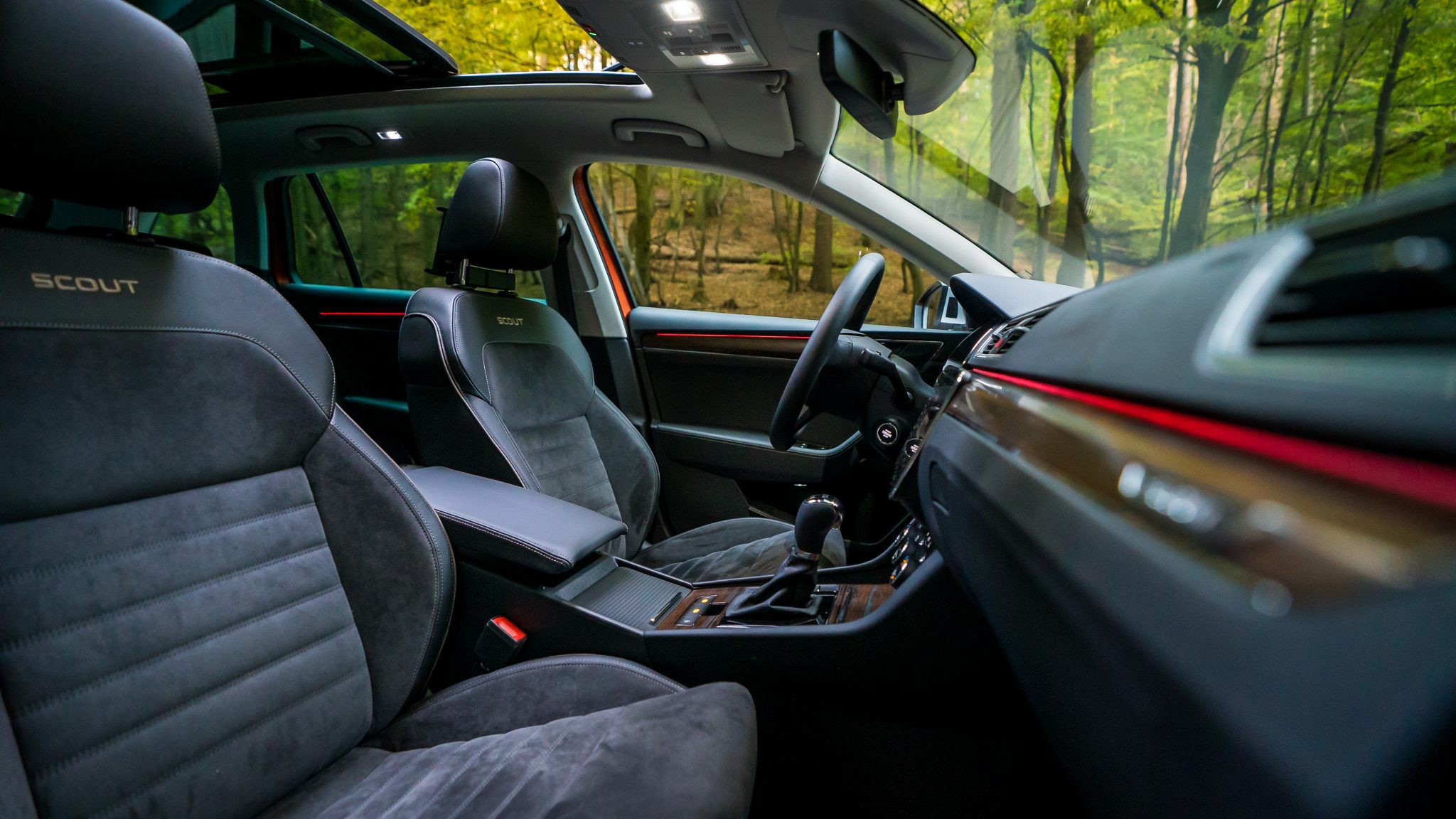 Tomuto charakteru zodpovedá aj kvalita a poťahy sedadiel. O tom, že sedíte v Superbe Scout, vás informuje nápis vyšitý na operadlách predných sedadiel. O priestrannosti Superbu je zbytočné sa rozpisovať.