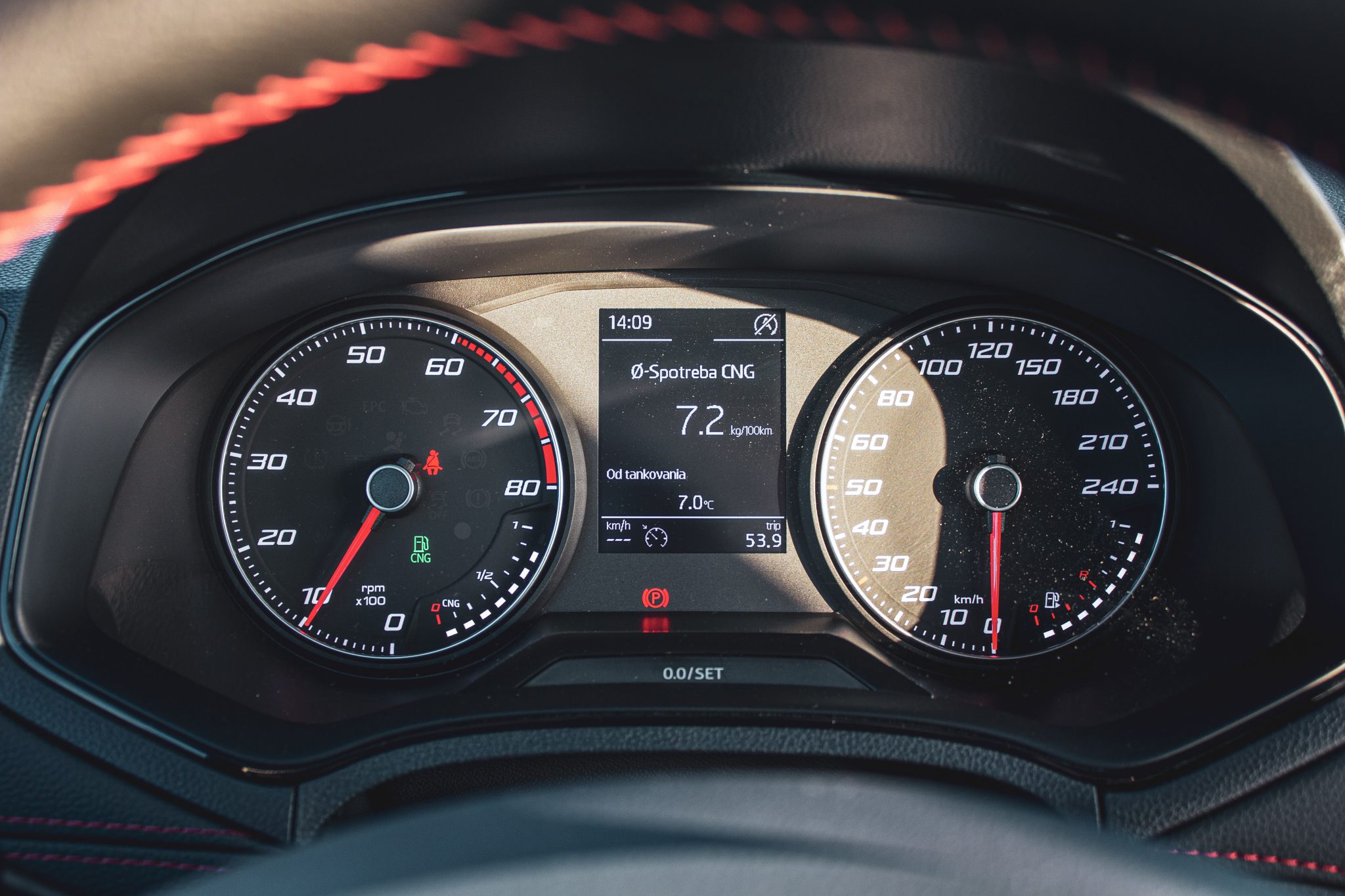 Obe autá najazdili v dvoch rozdielnych testoch približne rovnaký počet kilometrov po trase s podobným reliéfom. Spotreba sa v prípade španielskeho hybridu ustálila na priemernej hodnote 5,8 kilogramu CNG na 100 kilometrov. Nakoľko je dostupnosť plniacich staníc extrémne obmedzená, bude jej hlavným pôsobiskom mesto, kde mala spotrebu 5,9 kg/100km. Po natankovaní CNG som si všimol jednu zaujímavú vec. Pravdepodobne z dôvodu nízkej teploty CNG ide približne kilometer až dva na benzín. To zapríčinilo, že počas testu bola spotreba benzínu 14,9 litra na 100 kilometrov. Avšak Arona 99% testu spaľovala výhradne CNG, čo dávala najavo zelenou kontrolkou na prístrojovom štíte. Počas testu som benzín netankoval, a preto ho môžeme s nášho porovnania vyškrtnúť.