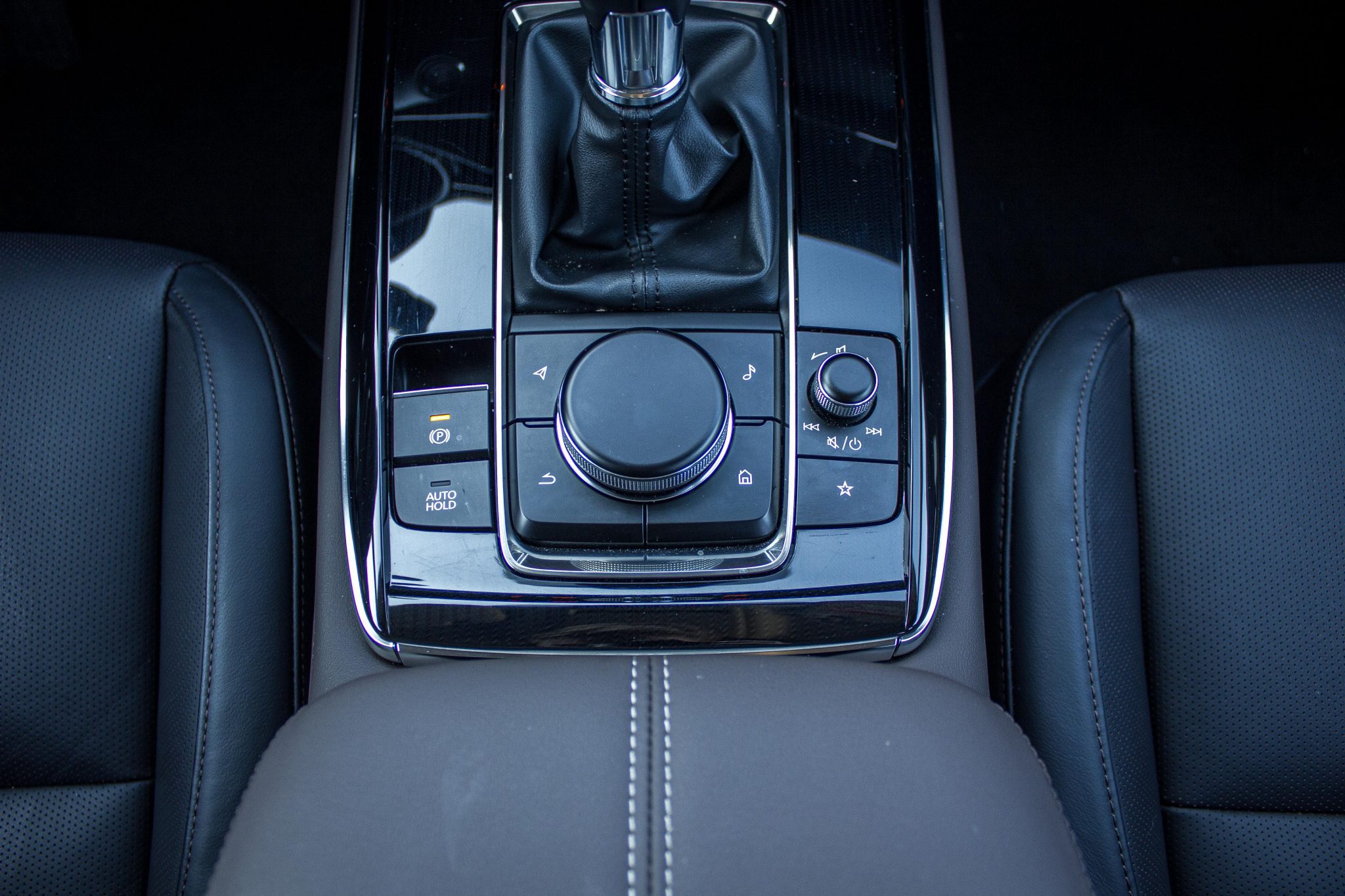 Interiér je jednoduchý, nie však lacný. Práve naopak, vnímaná kvalita je na vysokej úrovni, ergonómia je tiež veľmi dobrá. Takže našu predošlú vetu by sme asi opravili na: jeho silnou stránkou je elegantný minimalizmus. A toto auto vám ukáže aj to, že tak populárne dotykové displeje vôbec nepotrebujete. Mazda pri tomto modeli vsadila na ich kvalitu, dotykové ovládače nahradila ovládačom v stredovom tuneli. Ten je ľahko prístupný a celé menu je mimoriadne prehľadné, maximálne jednoduché a navrhnuté tak, že sa k všetkým dôležitým a často používaným funkciám dostanete dvomi, maximálne tromi preklikmi. A navyše máte k dispozícii aj dobre fungujúci head-up displej, premietajúci údaje priamo na čelné sklo.