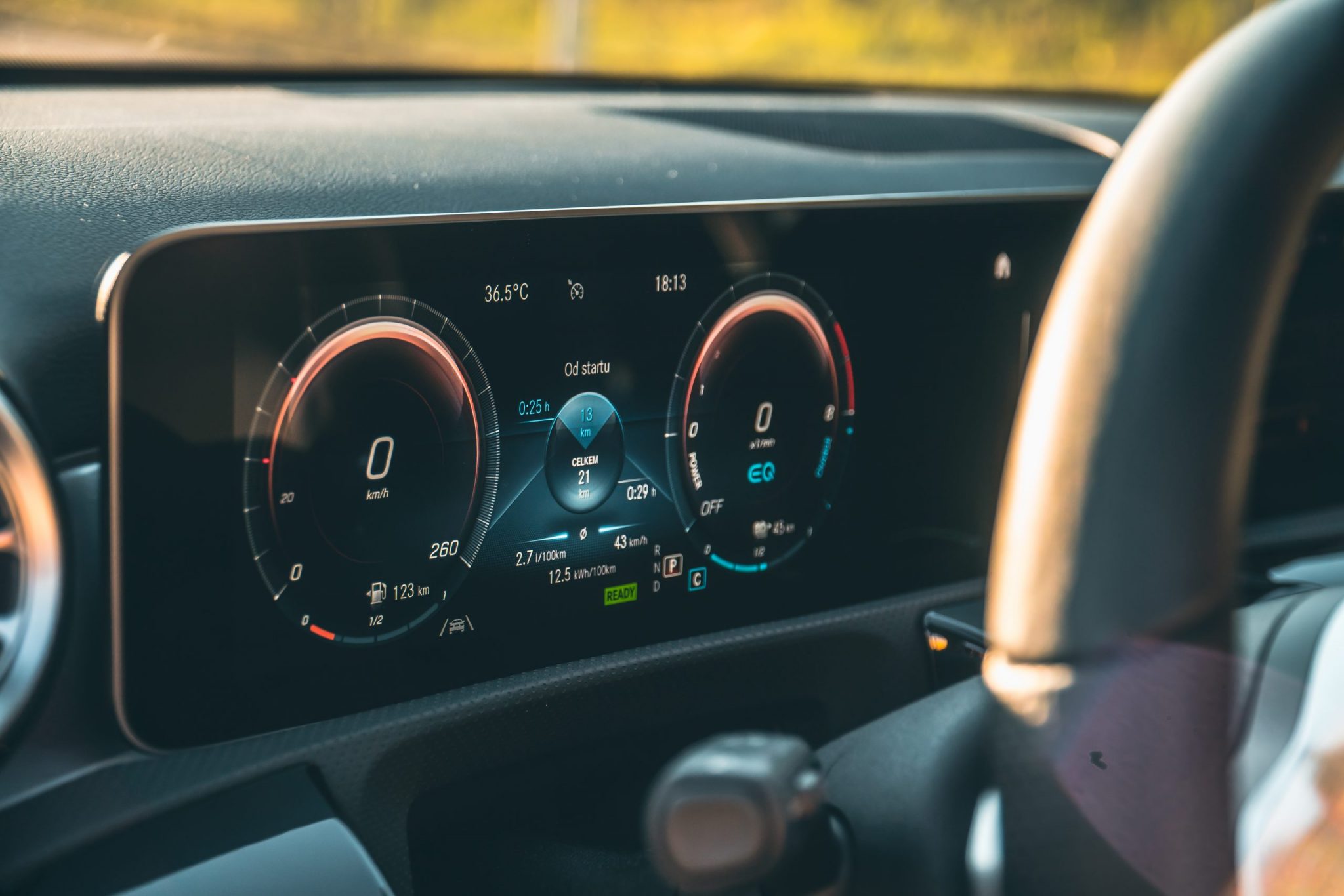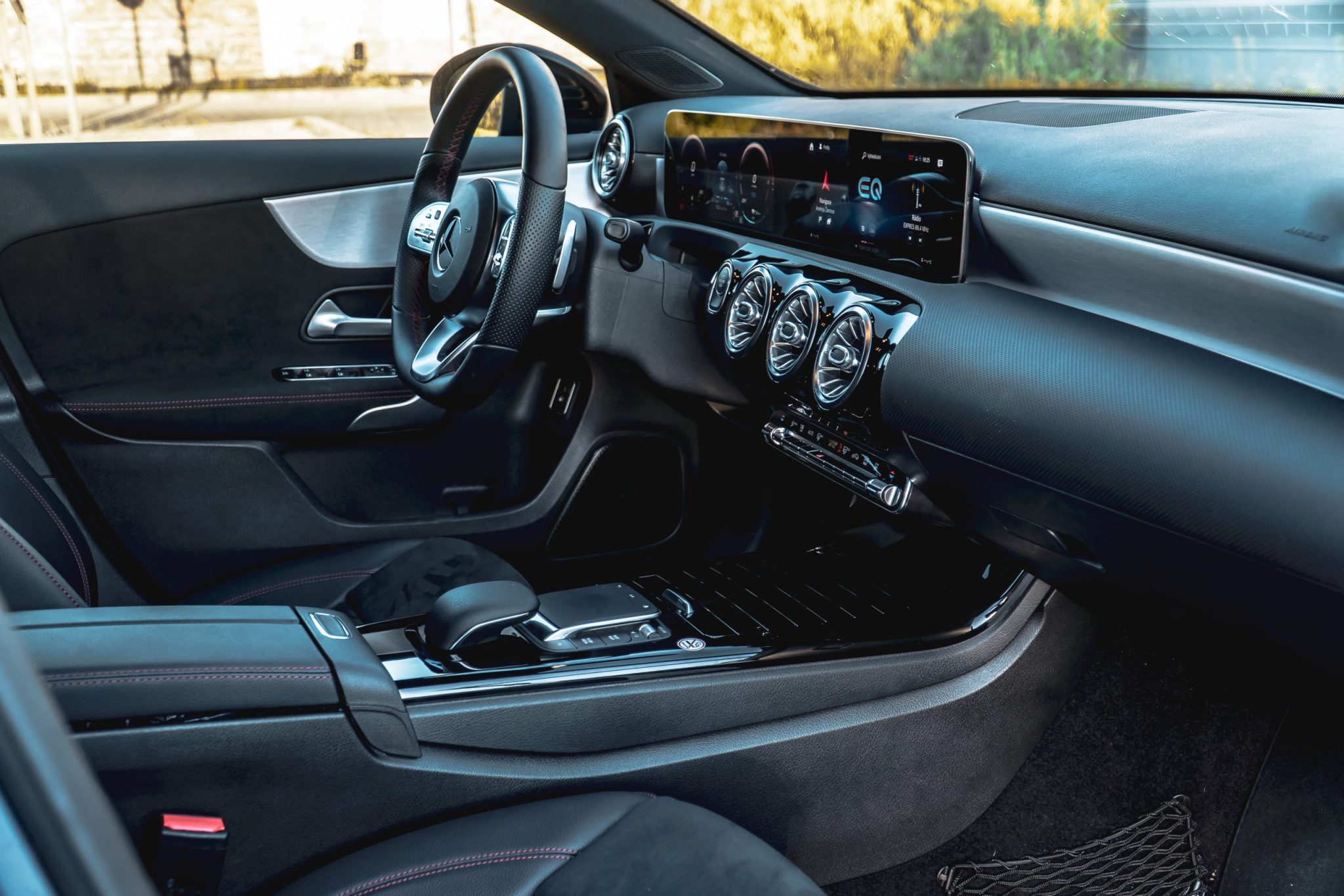 Od testu Mercedesu-Benz som nemohol očakávať nič iné ako prémiovú techniku, prémiový dizajn a detaily dotiahnuté k dokonalosti. Začnem pekne dizajnom. Nakoľko trieda A je na trhu už dlhšie, každý si už isto všimol to svoje pre a proti. Za mňa musím povedať, že „áčko“ ma príjemne prekvapilo tým, ako pôsobí. Aj keď sa jednalo o tú klasickú „eko“ verziu, auto si doslova pýtalo športovú jazdu. Gény F1 sú zakorenené hlboko v značke a to je len dobre. Navyše paket AMG je niečo, bez čoho si mladícky vyzerajúci Mercedes už azda neviem ani predstaviť. No a samozrejme potom je tu aj klasické AMG, ale to je už iná pesnička. Ak Vás to aj tak zaujíma, určite sa mrknite na našu recenziu. Od bežného “áčka” sa plug-in hybrid odlišuje len plaketamy EQ Power na predných blatníkoch a dvojicou krytiek hrdiel nádrží. Tá na vodičovej strane skrýva hrdlo benzínovej nádrže a na pravej strane je schovaný nabíjací konektor, ktorý je dokonca typu CCS.