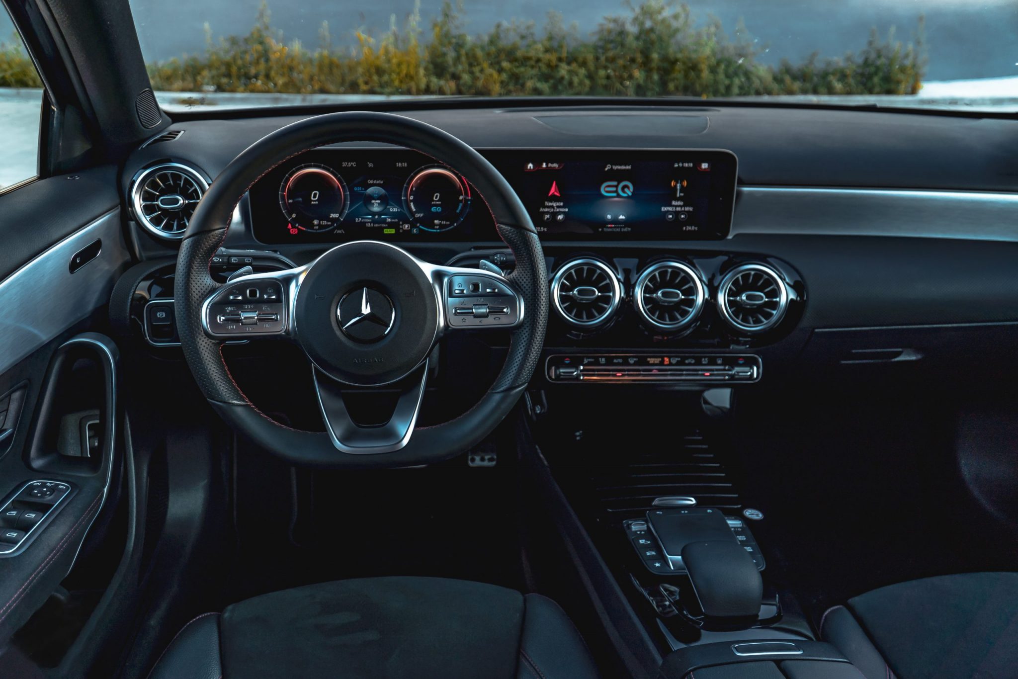 Od testu Mercedesu-Benz som nemohol očakávať nič iné ako prémiovú techniku, prémiový dizajn a detaily dotiahnuté k dokonalosti. Začnem pekne dizajnom. Nakoľko trieda A je na trhu už dlhšie, každý si už isto všimol to svoje pre a proti. Za mňa musím povedať, že „áčko“ ma príjemne prekvapilo tým, ako pôsobí. Aj keď sa jednalo o tú klasickú „eko“ verziu, auto si doslova pýtalo športovú jazdu. Gény F1 sú zakorenené hlboko v značke a to je len dobre. Navyše paket AMG je niečo, bez čoho si mladícky vyzerajúci Mercedes už azda neviem ani predstaviť. No a samozrejme potom je tu aj klasické AMG, ale to je už iná pesnička. Ak Vás to aj tak zaujíma, určite sa mrknite na našu recenziu. Od bežného “áčka” sa plug-in hybrid odlišuje len plaketamy EQ Power na predných blatníkoch a dvojicou krytiek hrdiel nádrží. Tá na vodičovej strane skrýva hrdlo benzínovej nádrže a na pravej strane je schovaný nabíjací konektor, ktorý je dokonca typu CCS.