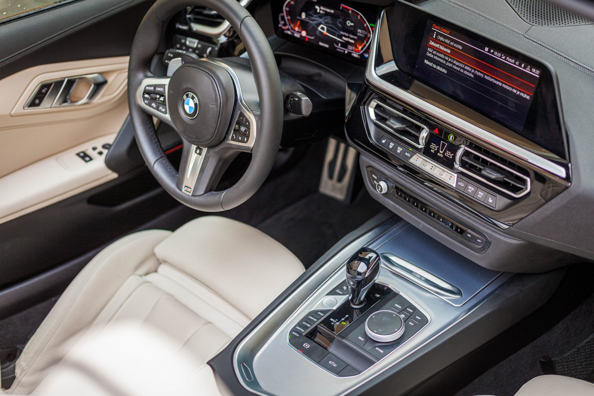 Spracovanie interiéru je v prípade kabrioletov rovnako dôležité ako exteriér. V našom prípade vyniklo bledé kožené spracovanie sedadiel a výplne dverí s čiernou palubnou doskou. Vznikol tak príjemný kontrast medzi exteriérom a interiérom. Dizajnérsky sa jedná o totožné spracovanie ako v prípade iných aktuálnych modelov BMW. Jasná orientácia na vodiča a prísne nízky posed s možnosťou nastavenia sedadla do takzvanej kolísky. Klasika, ktorú uvítajú predovšetkým milovníci asfaltu a serpentín. Perfektný posed za volantom je jednoducho základ, ten dopĺňa ideálne hrubý volant ktorý padne do ruky.