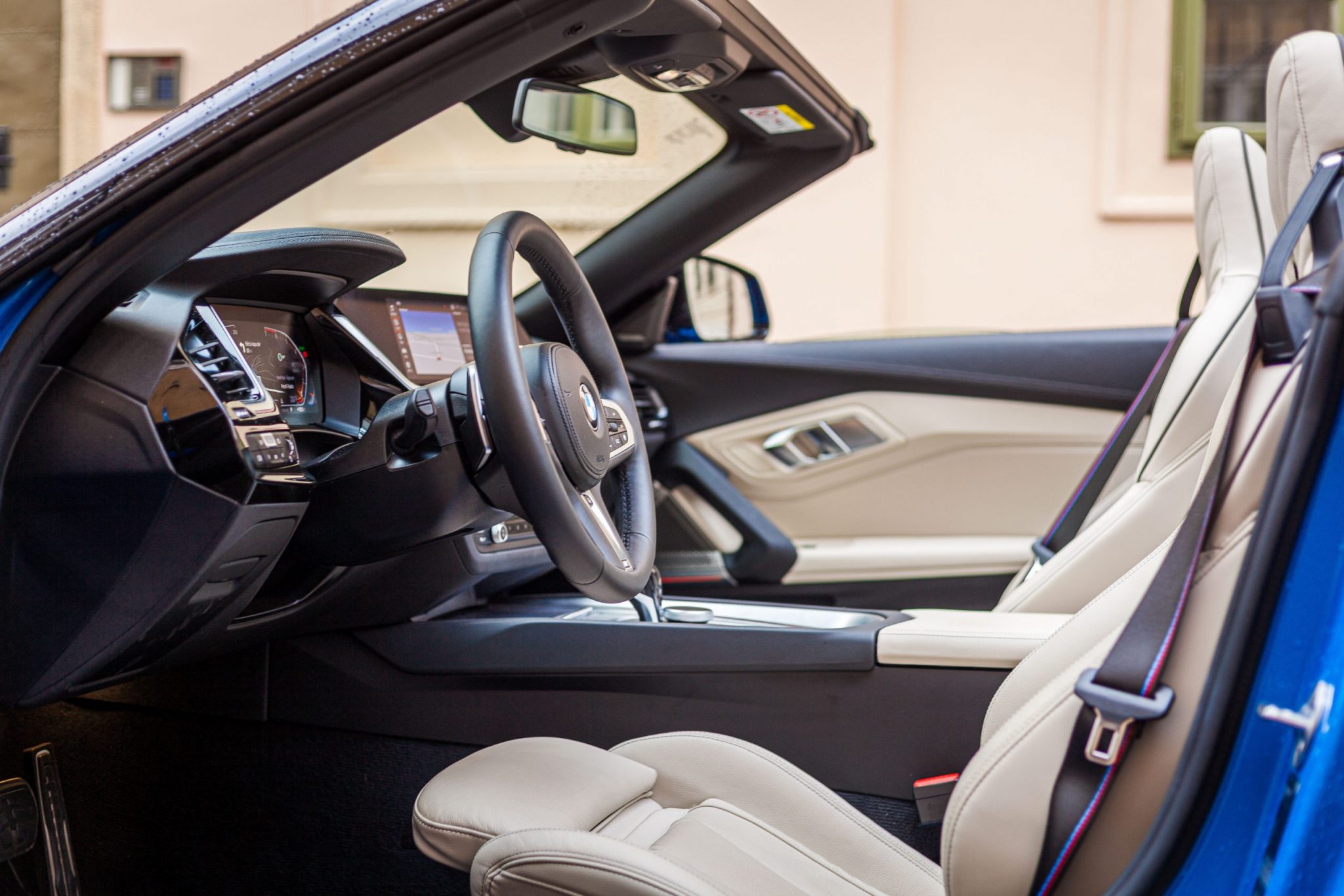 Špecifikom sú madlá dverí v netradičnom trojuholníkovom vzhľade. Do vnútra posadíte len jediného spolujazdca kedže Z4 je dvojmiestna. Pochvala konštruktérom, že sa nesnažili navrhnúť nezmyselnú zadnú lavicu kde aj tak nikdy nikoho neposadíte. Miesto toho využili maximum z batožinového priestoru, do ktorého aj pri sklopenej streche umiestnite batožinu na dovolenku. Inteligentne je riešený aj priestor za sedadlami kde sa nachádza sieťka na uloženie väčších predmetov, nechýba ani praktický výrez na lyže alebo dlhé predmety.