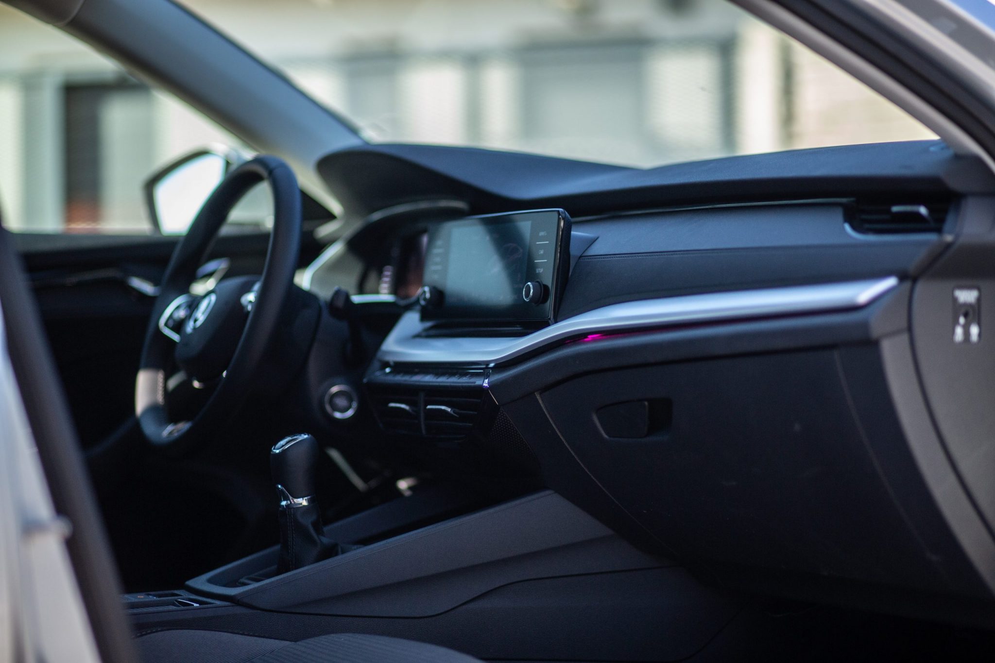Odhliadnuc od toho, že výbava RS a Scout sú dizajnovo podstatne vpredu, Ambition je taká šedá myška. A hlavne v testovanej striebornej farbe bola veľmi nevýrazná a na ceste a parkoviskách sa strácala. Možno to niekomu, kto nechce byť stredobodom pozornosti nebude vadiť, no mne osobne chýbal taký “wow efekt” z nového auta. Podobne to bolo aj v interiéri. Tu je paradoxne cítiť stratu identity o niečo viac. Škoda sa snažila vytvoriť moderný, digitálny interiér s minimom tlačidiel. Podarilo sa jej to, no stojí za tým viacero kompromisov.