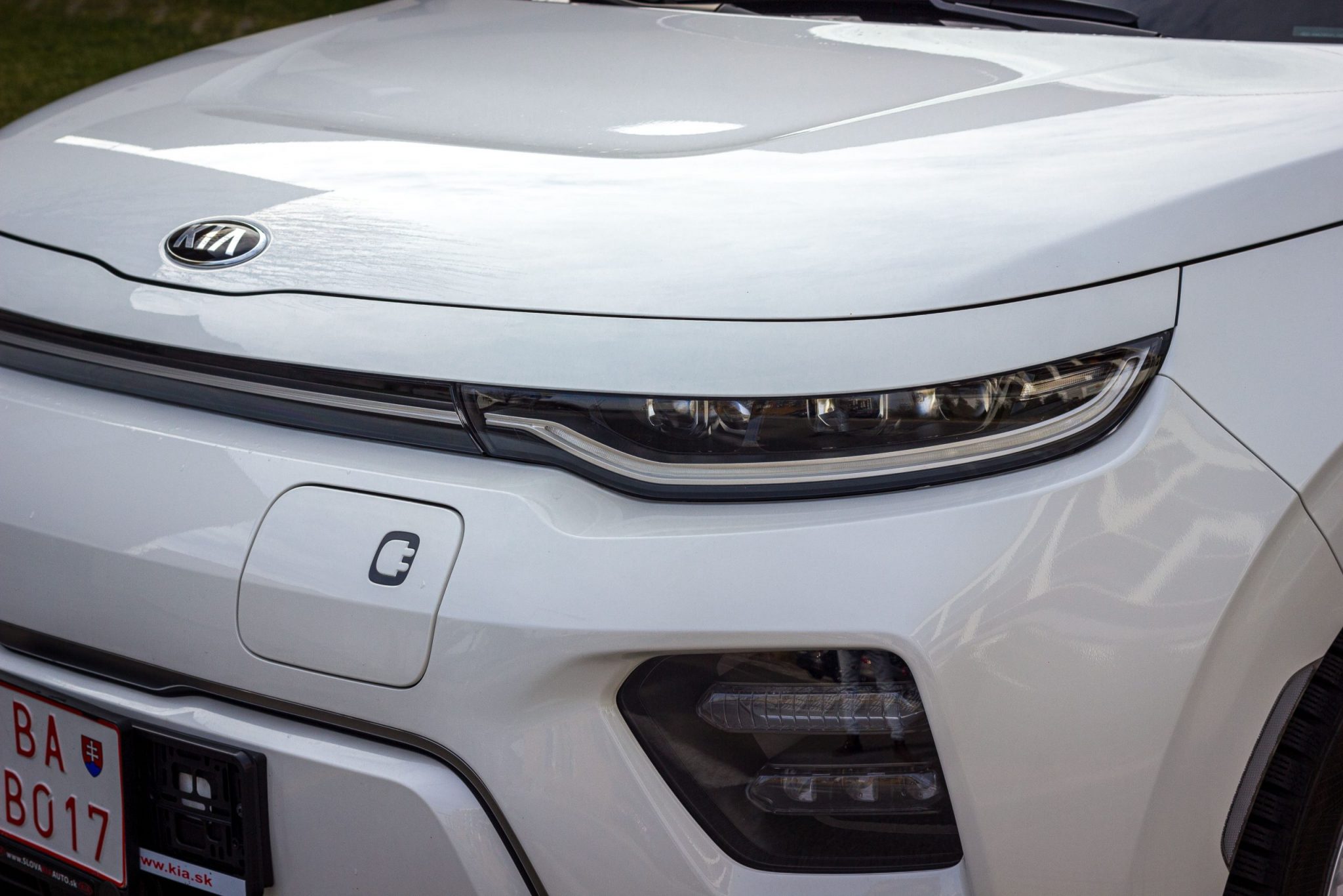 Tento prvok stavby karosérie si e-Soul zachoval aj pri svojej druhej generácií. Predná maska pôsobí minimalistickým dojmom, najmä vďaka úzkym svetlometom. Tie sú prepojené optickou linkou a dotvárajú dojem jednej úzkej čiary. Svetlomety sú rozdelené do dvoch poschodí, to najdôležitejšie sa však odohráva v hornej časti. Celkovo sa takéto umiestnenie Soulu hodí a pôsobí tak futuristicky. Nabíjanie ostalo integrované v prednej maske čo je podľa nášho názoru, pri súčasnom trende nabíjacích staníc, to najideálnejšie riešenie.