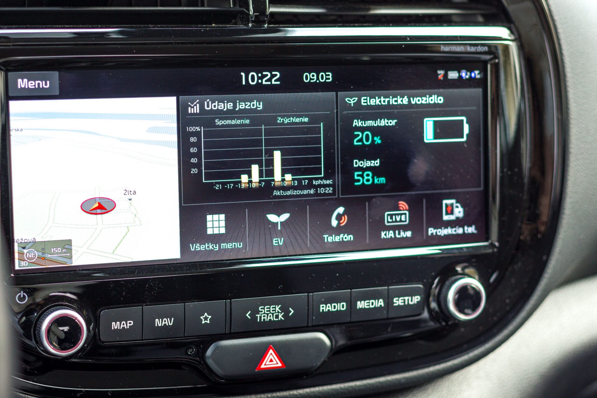 Samozrejme najdôležitejšiu úlohu pri elektromobile zohráva rýchlosť nabíjania. Kým prvá generácia elektrického Soulu mala ChaDeMo konektor, tá druhá už používa výlučne CCS s výkonom až 80 kW. To znamená že auto nabijete za zhruba hodinu, presnejšie nepredpokladáme že prídete na nabíjačku s úplnou nulou, tých 10% tam mať budete. Následne nabíjanie na 80% vám zaberie asi 40-50 minút. Zvyšných 20% už budete musieť zaťať zuby, alebo si to necháte na doma. Nabíjací výkon totiž po dosiahnutí 80% nabitia rýchlo klesá pod úroveň 20 kW.