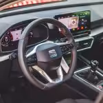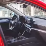 Palubná doska je jednoduchá a najvýraznejším prvkom sú výduchy klimatizácie v štýle Lamborghini. Pred vodičom sa nachádza digitálny prístrojový štít, ktorý prináša jedinečné zobrazenie typické pre SEAT rovnako ako grafika samotného infotainmentu. Zobrazenie oboch displejov je na vysokej úrovni. Bohužiaľ ani SEAT sa nevyhol zapracovaniu ovládania klimatizácie v štýle dotyku, no rozhodne to zvládol najlepšie. Leon ponúka za príplatok až trojzónovú klimatizáciu rovnako ako Octavia, je to novinka ktorá bola donedávna výsadou prémiovej triedy.