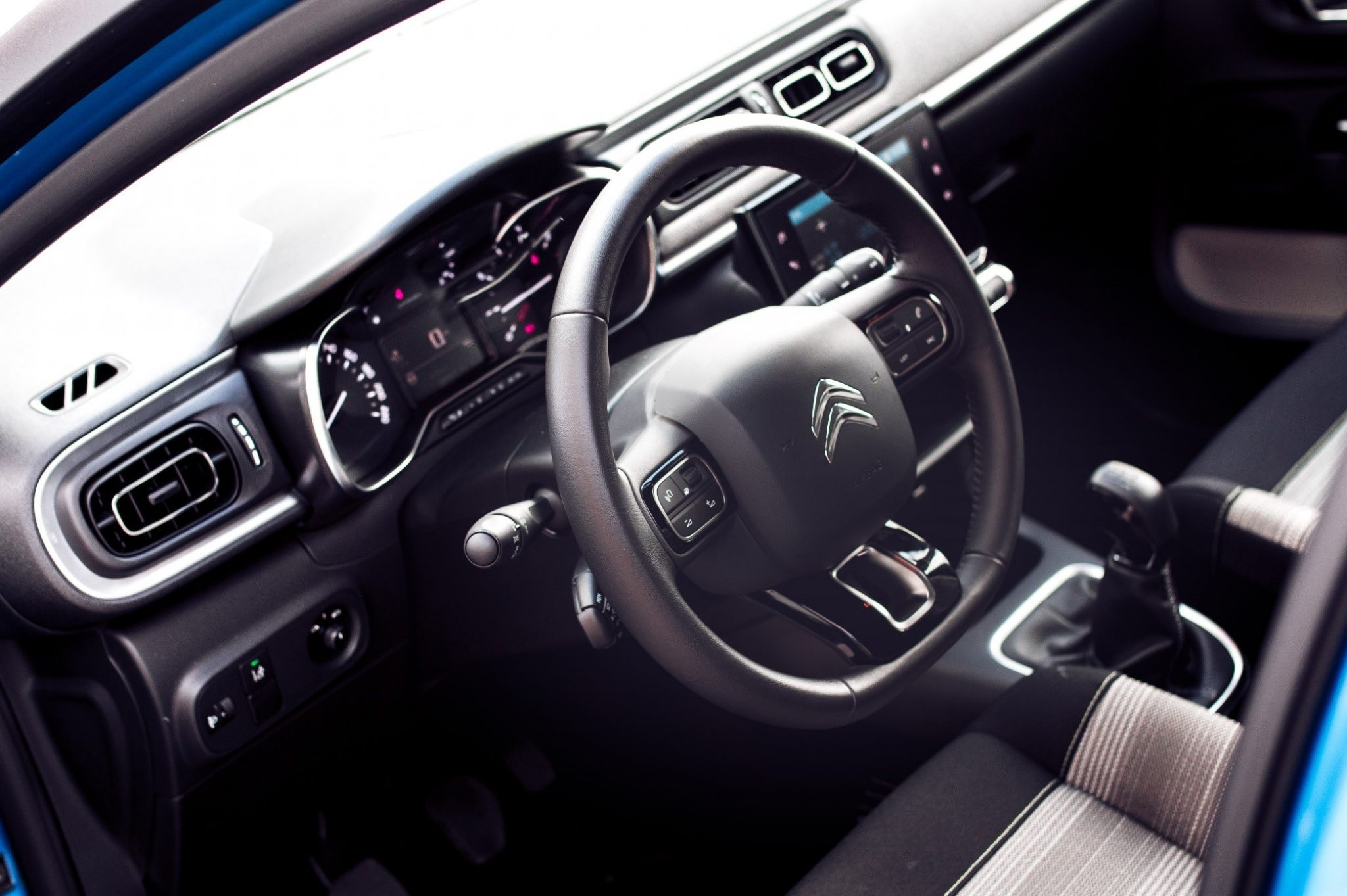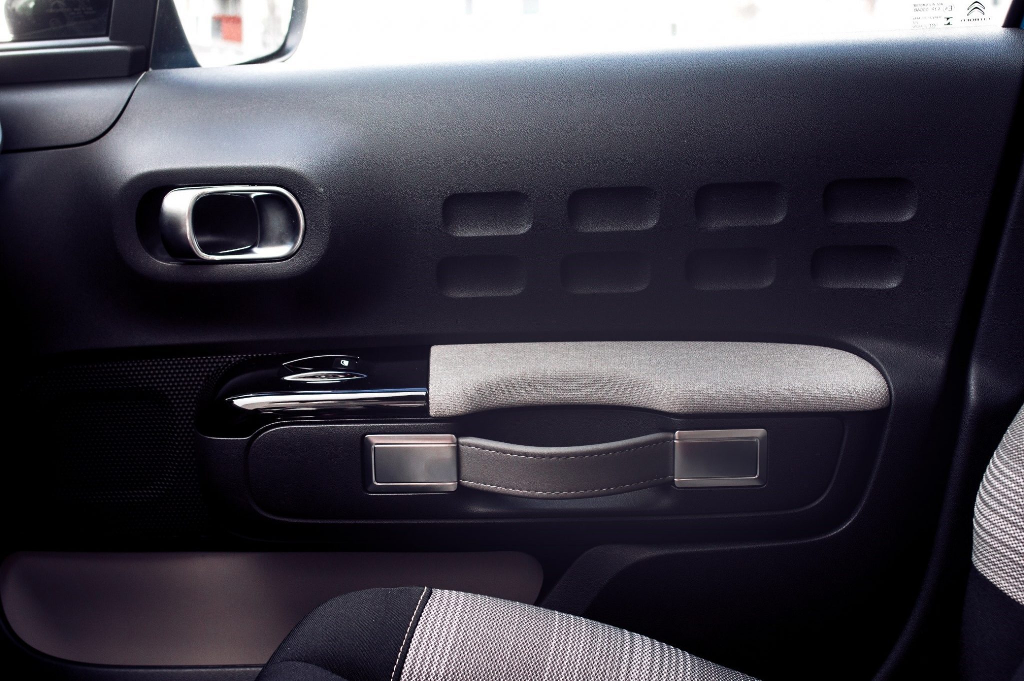 Po krátkom usadení sa za volant novej generácie C3 som ostal príjemne prekvapený, mal som pocit ako by som sa posadil doma na sedačku. Veľmi jednoducho tvarované mäkké sedadlá sú síce komfortné ale hneď v prvej zákrute som pocítil ich nevýhodu. Nie sú dostatočne vykrojené a tvarované nato aby poskytli vášmu telu potrebnú oporu pri dynamickejšej jazde, o tom však nová C3 nieje. Interiér do značnej miery kopíruje svojho väčšieho brata C4 Cactus, je však o čosi praktickejší. Určite by ma zaujímalo či netradičné vnútorné madlá dverí vydržia pravidelné použivanie. Mňa osobne tento dizajnový prvok sklamal. Povrch väčšiny interiéru je bohužiaľ z tvrdého plastu, čo do značnej miery uberá na finálnom dojme.