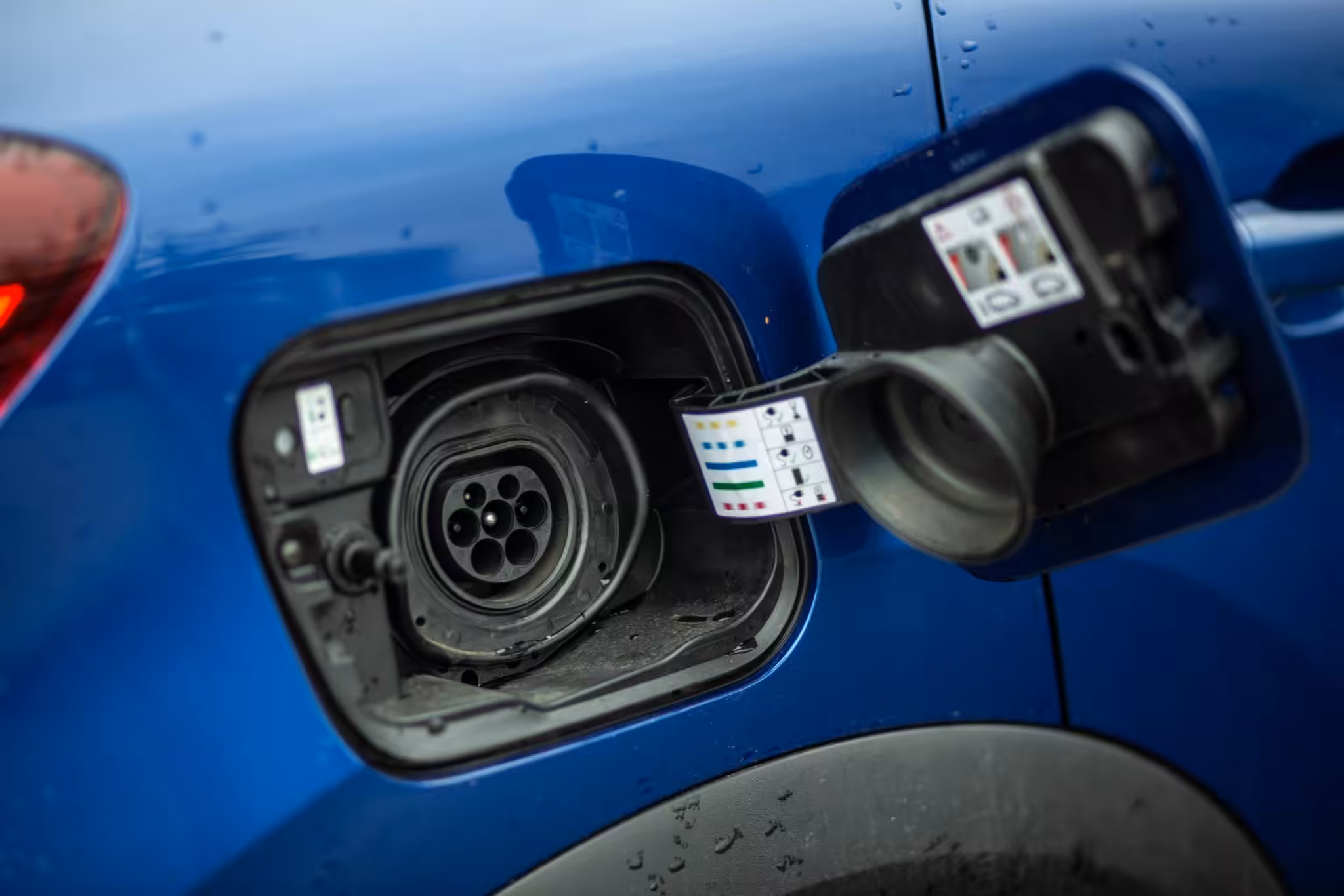 Ako toto pohonné ústrojenstvo spoznať za bežnej prevádzky? Aktuálne máme trend zelených značiek, ktoré odlišujú elektro autá, prípadne plug-in hybridné vozidlá od „ostatných“ vozidiel. Rovnako tomu bolo aj pri nami testovanom vozidle. Keby sa lepšie zapozeráme, PHEV model prezrádzajú aj modré krytky kolies, či označenie na B-stĺpiku. Keby si auto obídete dookola, tak si takisto všimnete dve otvárateľné nádržky. Jedna na benzín, druhá na elektrinu.